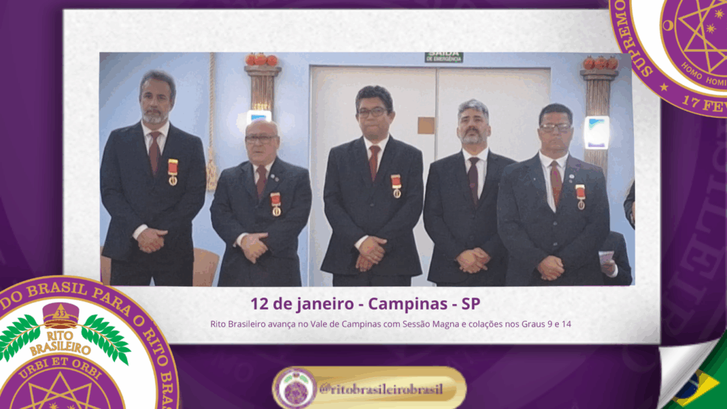 No dia doze de janeiro do ano de dois mil e vinte e seis, o Ilustre e Sublime Capítulo Irmão Edson Barsanti nº 20, ao Vale de Campinas, realizou uma significativa Sessão Magna de Colação dos Graus 9 – Mestre da Justiça e 14 – Mestre da Perseverança, marcando o retorno das atividades dos Altos Corpos Filosóficos na região e fortalecendo o Rito Brasileiro de Maçons Antigos, Livres e Aceitos no Estado de São Paulo.
