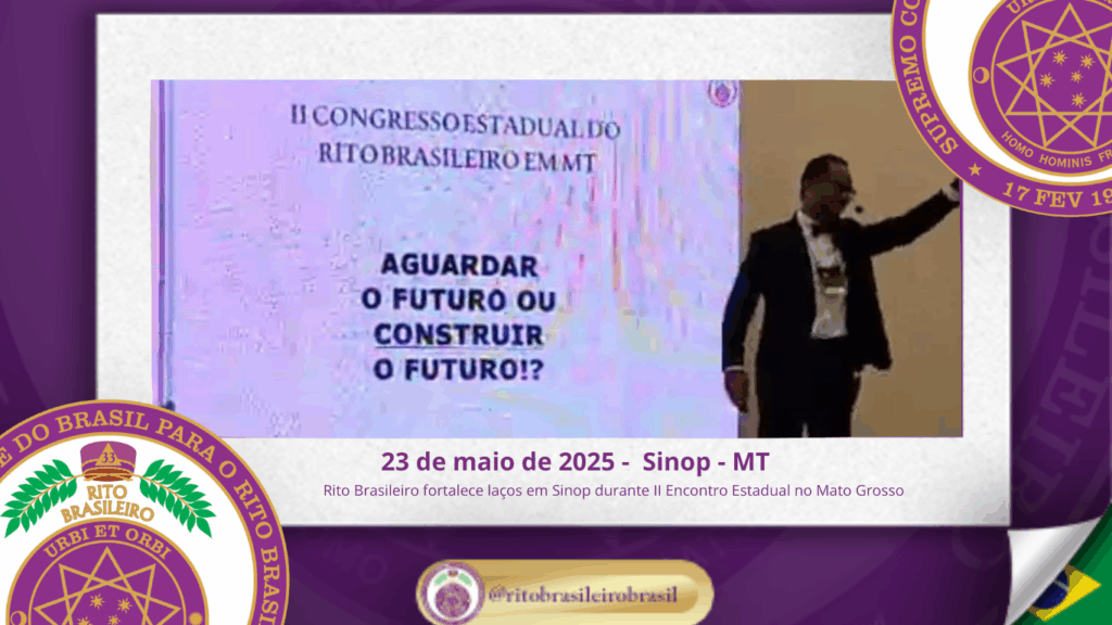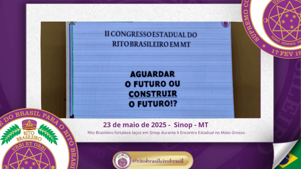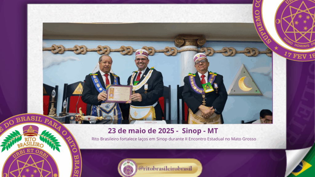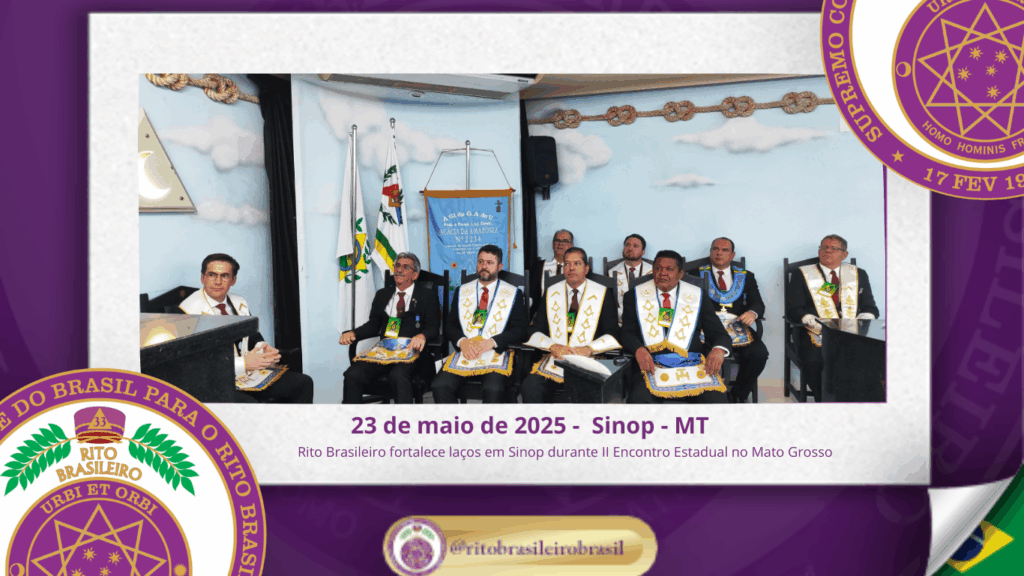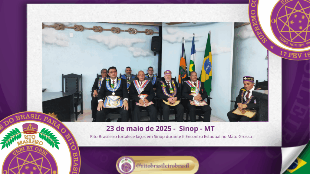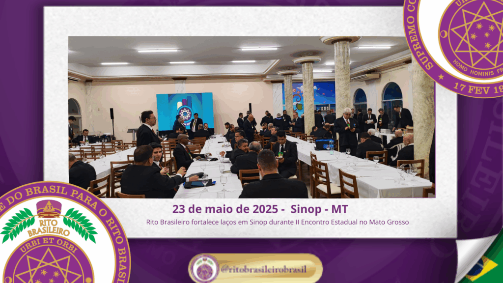 No dia vinte e três de maio de dois mil e vinte e cinco, foi realizada, ao Oriente de Sinop, no Estado do Mato Grosso, a abertura oficial do II Encontro Estadual do Rito Brasileiro no Estado do Mato Grosso.