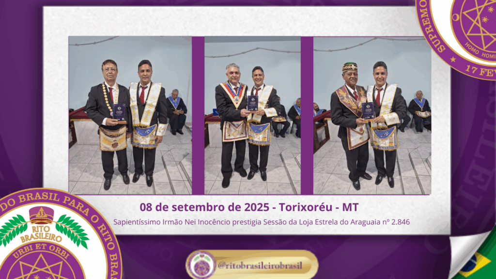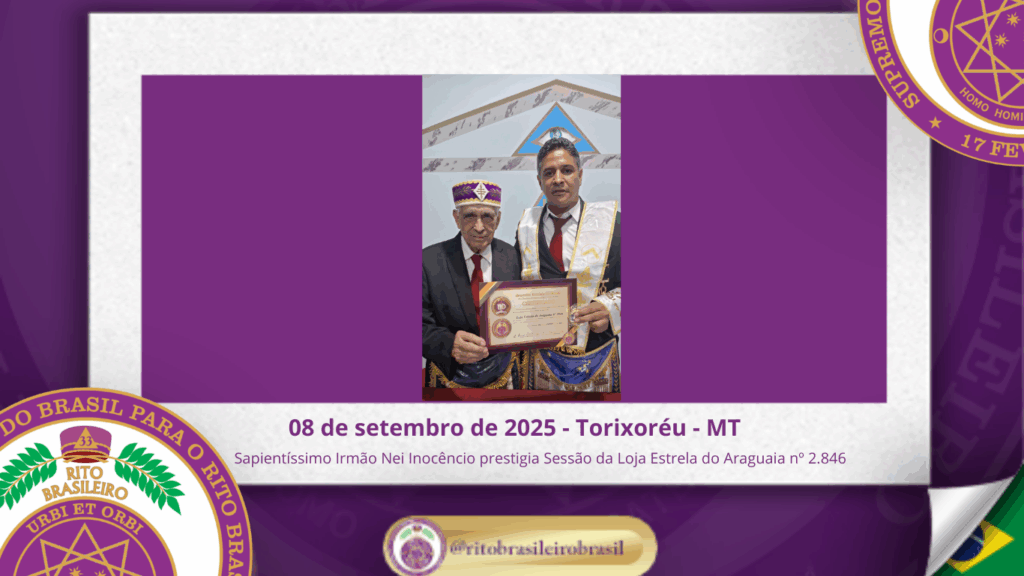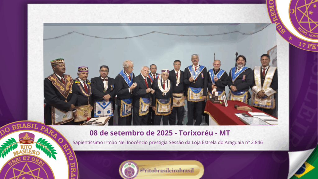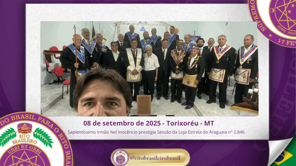 No dia oito de setembro de dois mil e vinte e cinco, a Augusta e Respeitável Loja Simbólica Estrela do Araguaia nº 2.846, ao Oriente de Torixoréu, no Estado de Mato Grosso, realizou uma significativa Sessão no Grau de Aprendiz Maçom, presidida com dedicação e zelo pelo Venerável Mestre, Irmão Walinton Ranier Jesus Ferreira.