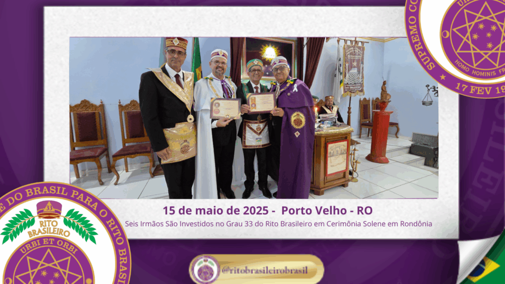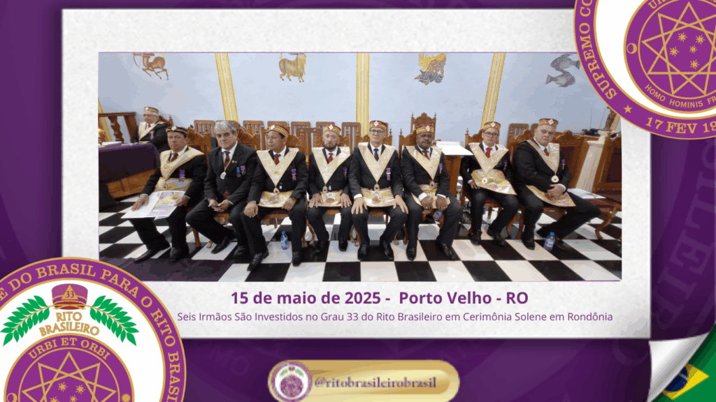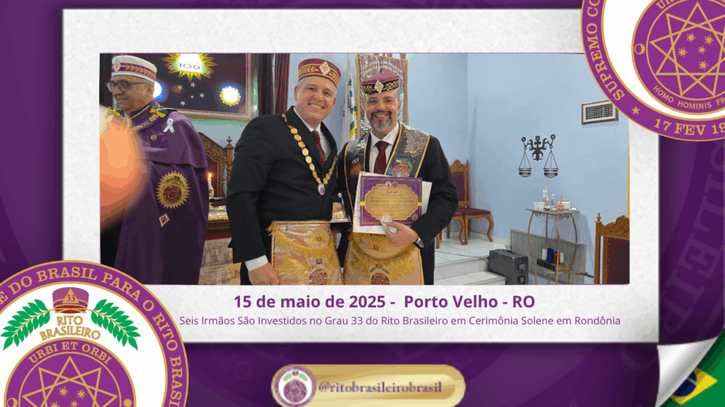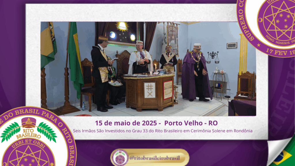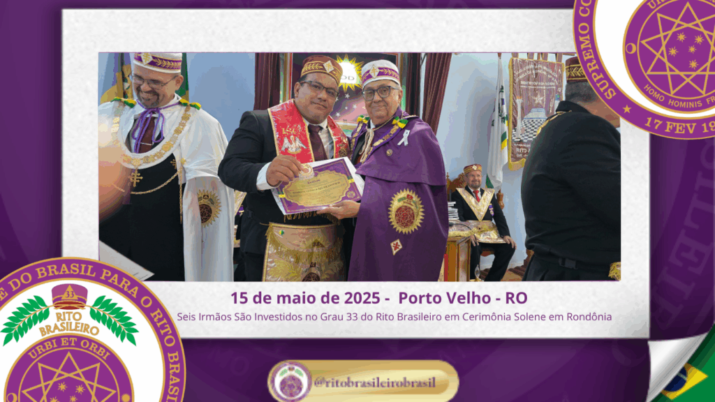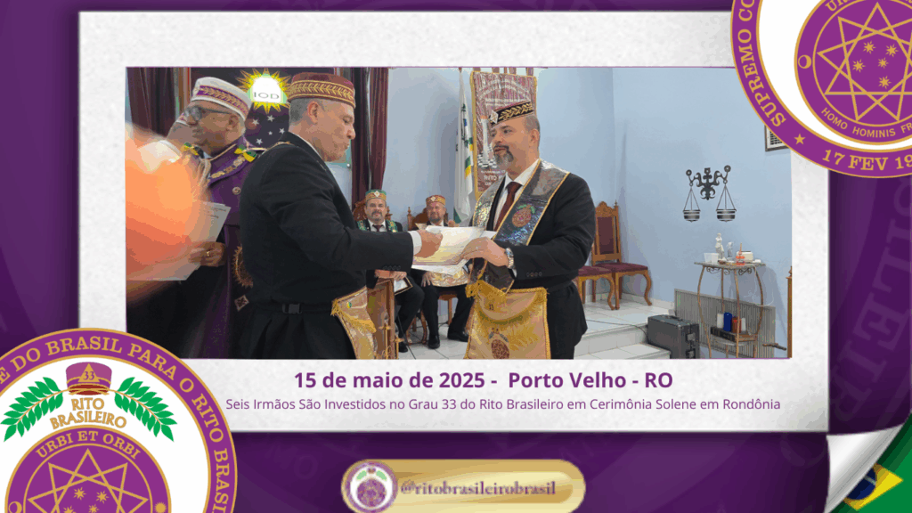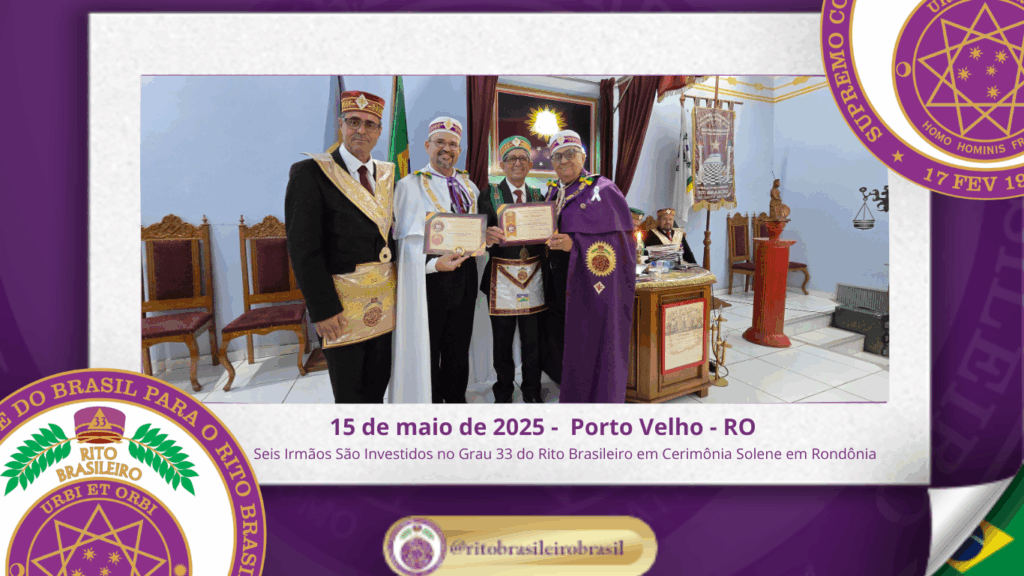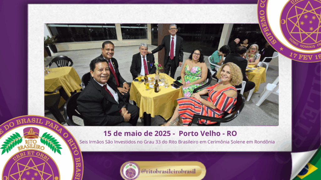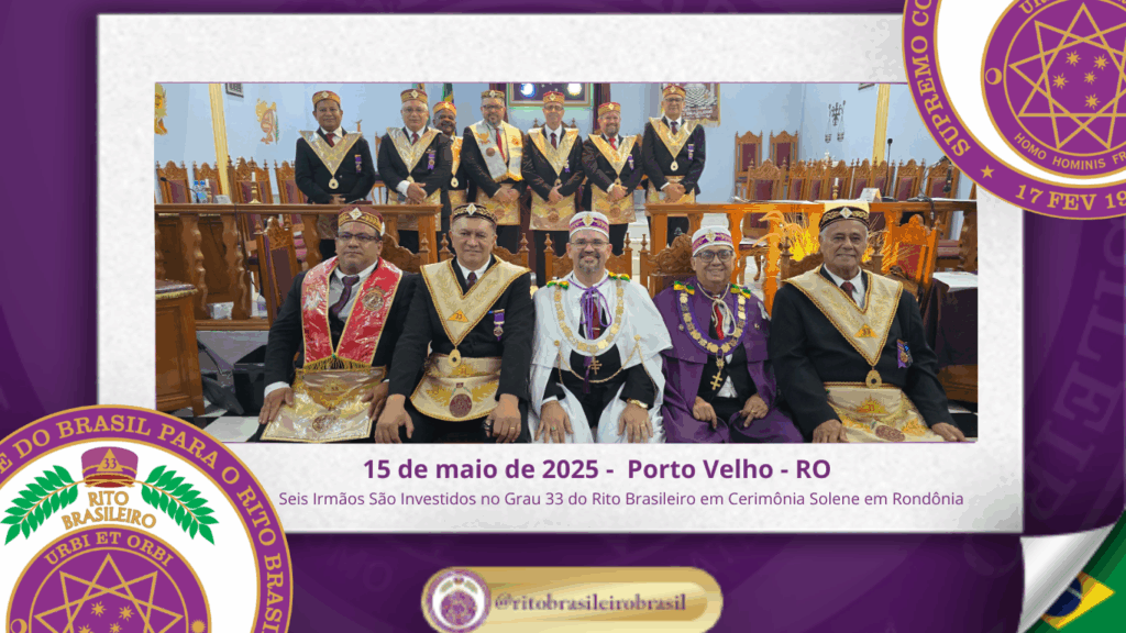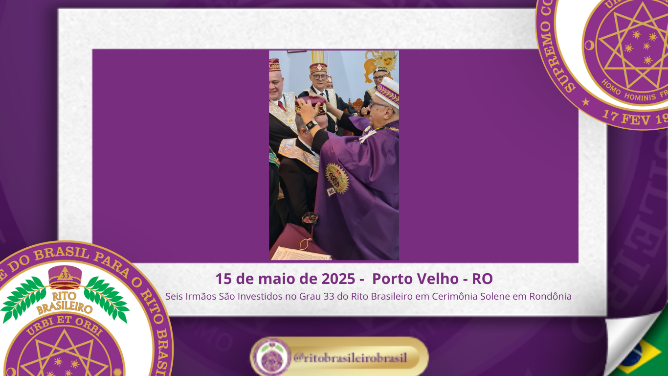 No dia quinze de maio de dois mil e vinte e cinco, à noite, no templo da Augusta e Respeitável Loja Simbólica Estrela de Rondônia, ao Oriente de Porto Velho, foi realizada a solene Sessão de Investidura ao Sumo Grau 33 – Servidor da Ordem, da Pátria e da Humanidade – do Rito Brasileiro de Maçons Antigos, Livres e Aceitos. Na ocasião, seis Irmãos foram elevados ao mais alto grau da hierarquia filosófica do Rito.