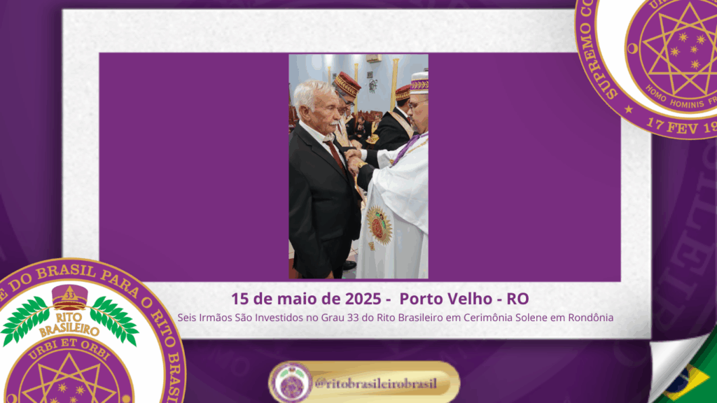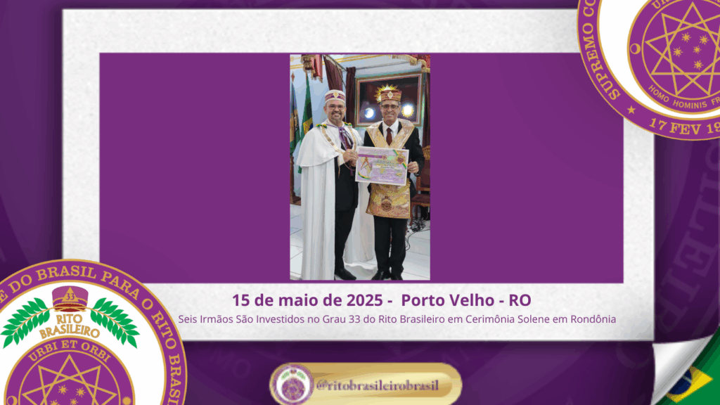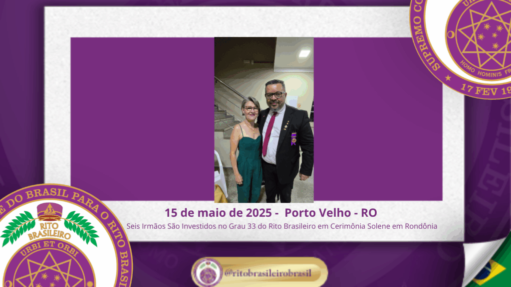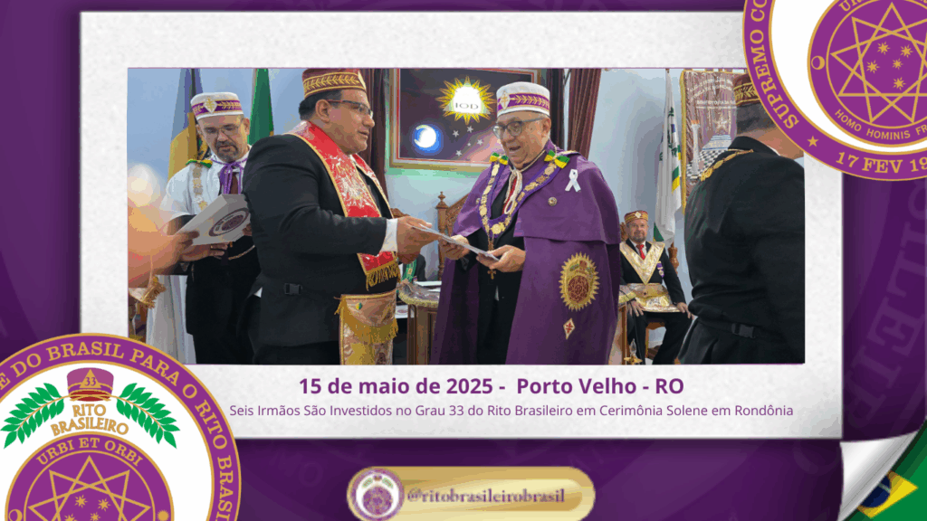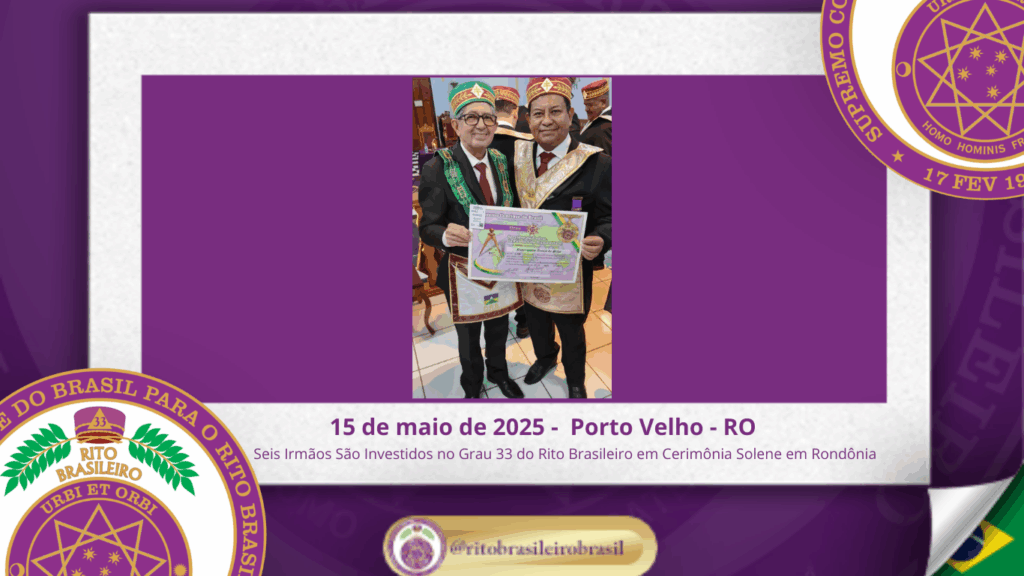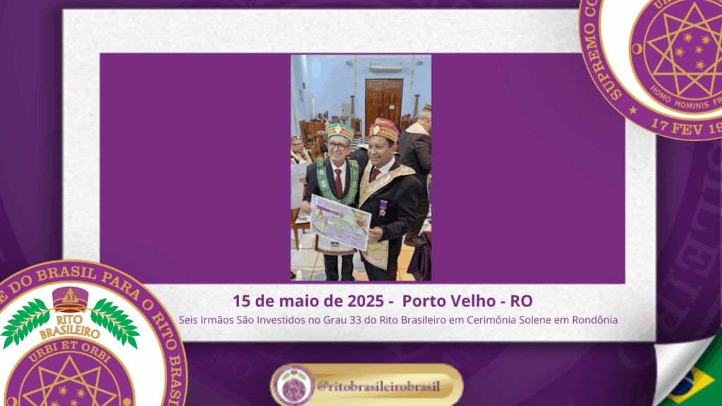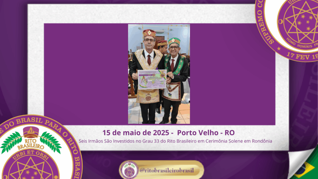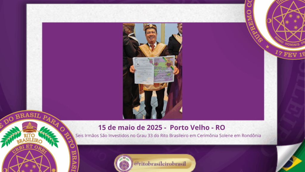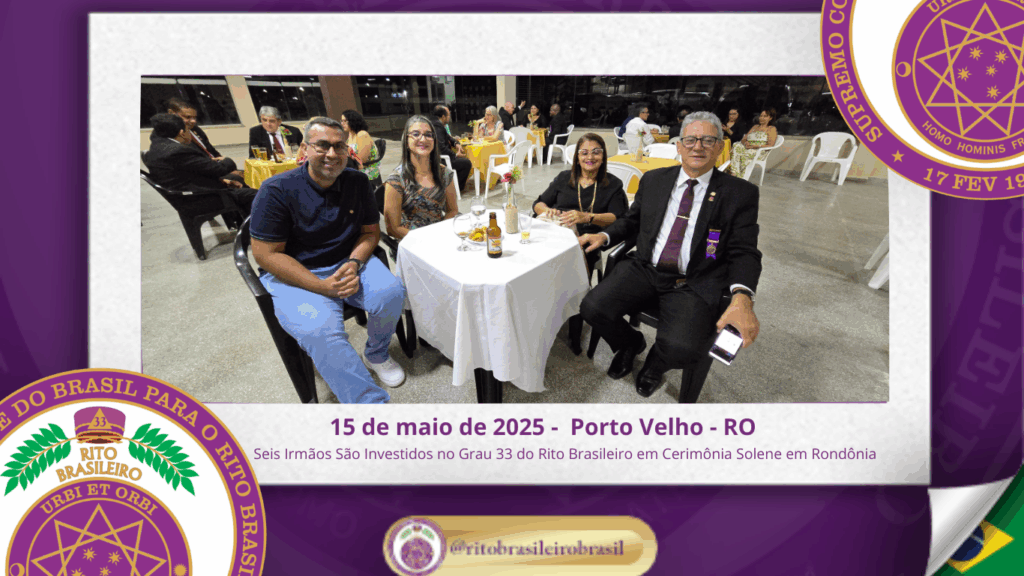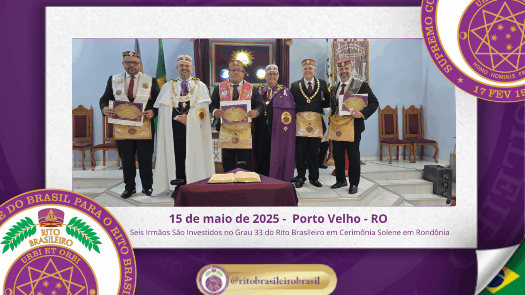 No dia quinze de maio de dois mil e vinte e cinco, à noite, no templo da Augusta e Respeitável Loja Simbólica Estrela de Rondônia, ao Oriente de Porto Velho, foi realizada a solene Sessão de Investidura ao Sumo Grau 33 – Servidor da Ordem, da Pátria e da Humanidade – do Rito Brasileiro de Maçons Antigos, Livres e Aceitos. Na ocasião, seis Irmãos foram elevados ao mais alto grau da hierarquia filosófica do Rito.