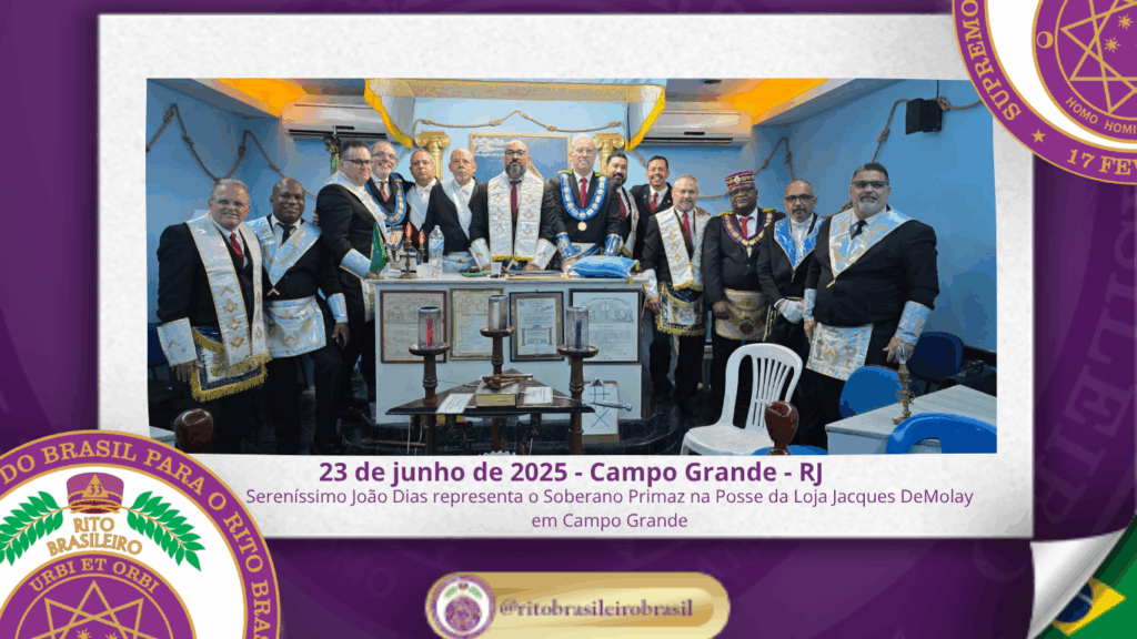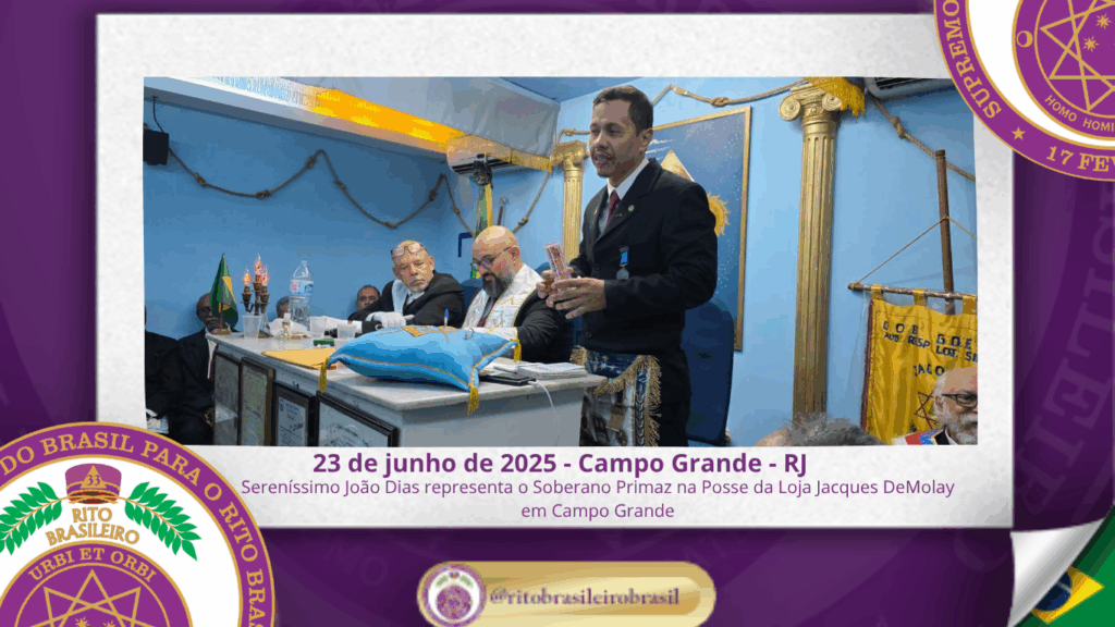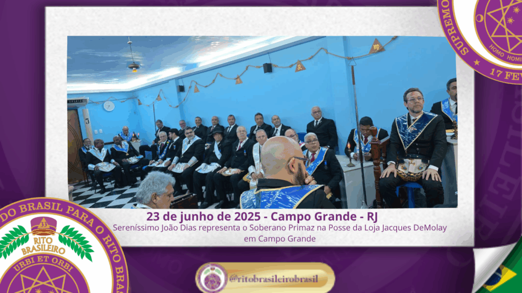No dia vinte e três de junho de dois mil e vinte e cinco, no Oriente de Campo Grande, o Sereníssimo Irmão João Dias, Grande Chanceler do Supremo Conclave do Brasil, esteve presente na Augusta e Respeitável Loja Simbólica Jacques DeMolay, nº 2934, para prestigiar a cerimônia de Posse da nova administração da Oficina.
