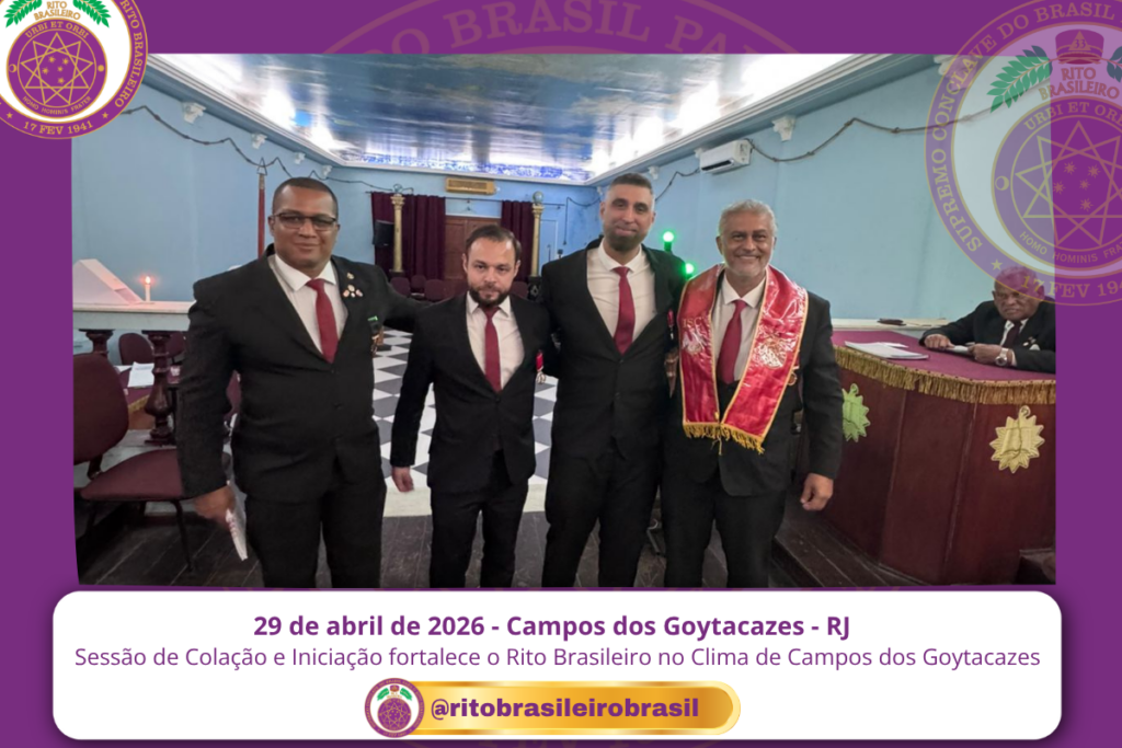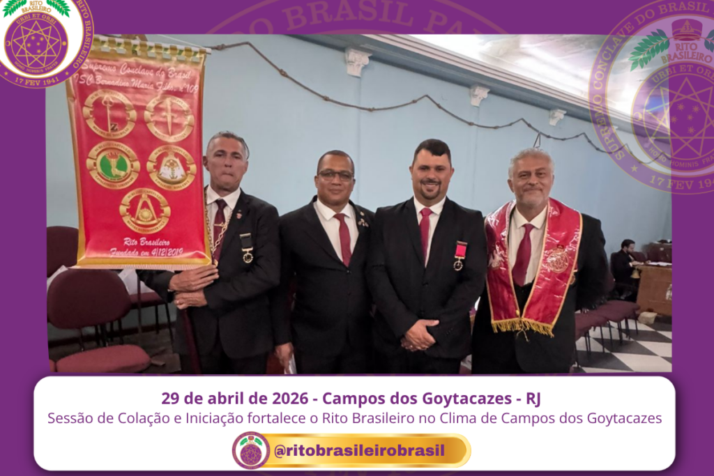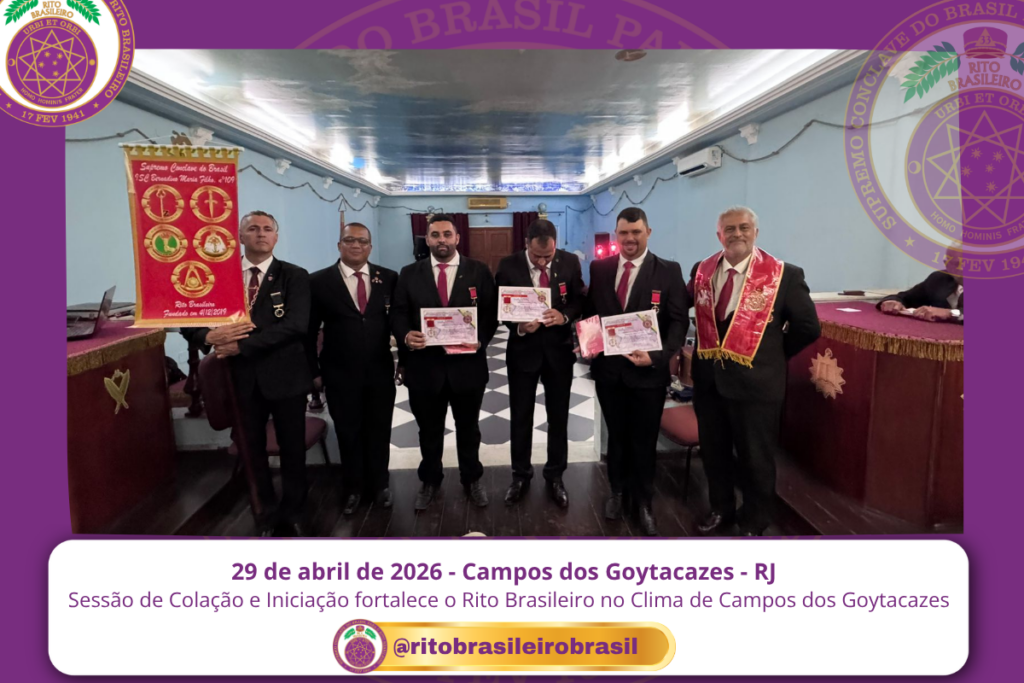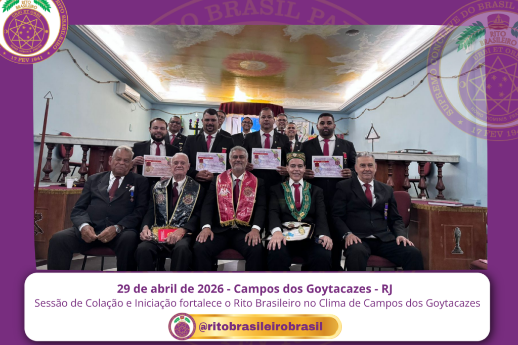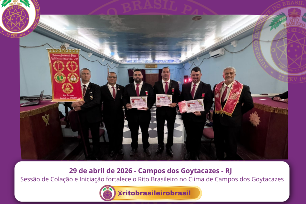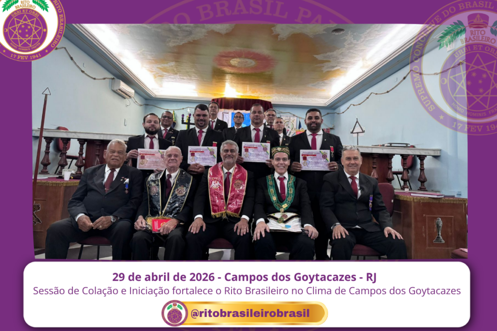 No dia vinte e nove de abril de dois mil e vinte e seis, ao Clima de Campos dos Goytacazes, no estado do Rio de Janeiro, o O Ilustre e Sublime Capítulo Bernadino Maria Filho nº 109 realizou uma marcante Sessão de Colação e Iniciação nos Altos Graus Filosóficos do Rito Brasileiro.