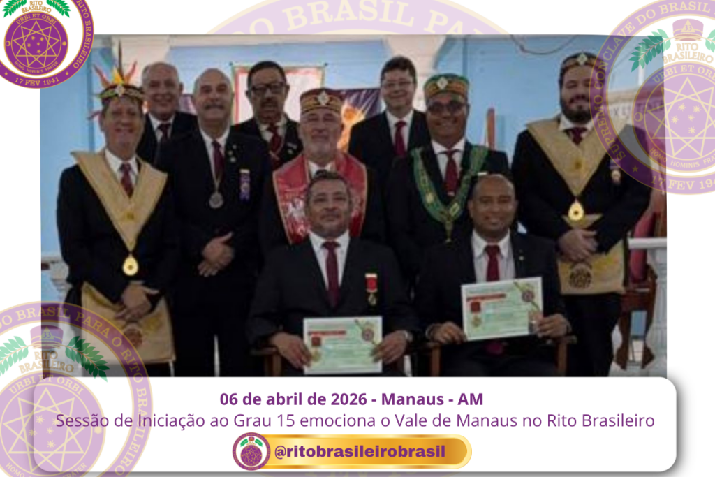 No dia 6 de abril de 2026, o Supremo Conclave do Brasil viveu mais um momento marcante no Rito Brasileiro com a realização da Sessão de Iniciação ao Grau 15 – Mestre da Liberdade, promovida por O Ilustre e Sublime Capítulo Vale da Vitória Régia nº 21, no Vale de Manaus, no Clima do Amazonas.
