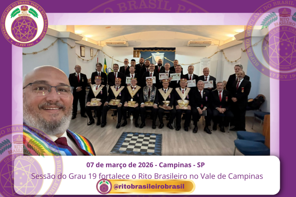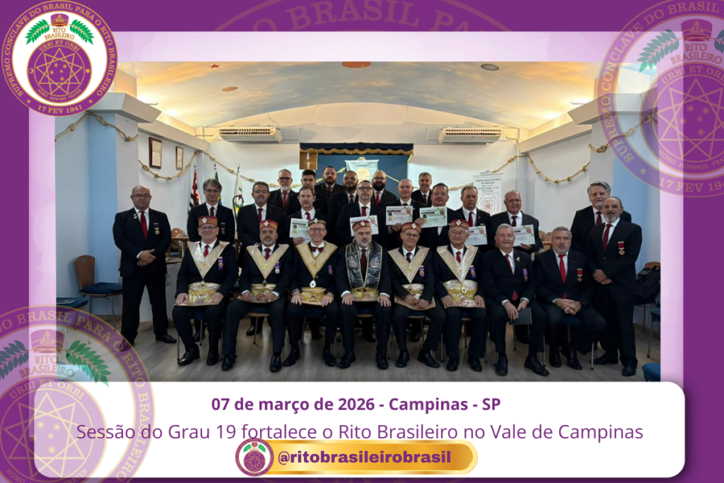 No dia 7 de março de 2026, o Poderoso Grande Conselho Kadosch Filosófico João Batista Roque nº 133, jurisdicionado ao Supremo Conclave do Brasil para o Rito Brasileiro de Maçons Antigos, Livres e Aceitos, ao Vale de Campinas/SP, realizou uma Sessão Magna de Colação do Grau 19 – Missionário da Agricultura e da Pecuária, em uma noite marcada pela solenidade, fraternidade e profundo significado filosófico.
