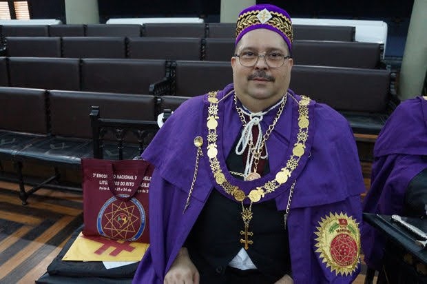 Em seguida houve a CERIMÔNIA DE POSSE DE DELEGADO LITÚRGICO DO RITO BRASILEIRO, do Em.’. Ir.’. LUIZ MAURICIO SARDINHA BARRETO, que após ter prestado o seu juramento foi revestido por sua esposa, a cunhada SANDRA MELLO BARRETO, com os paramentos de Delegado Litúrgico. (Fotos abaixo)