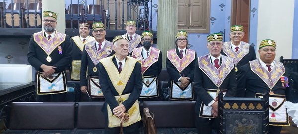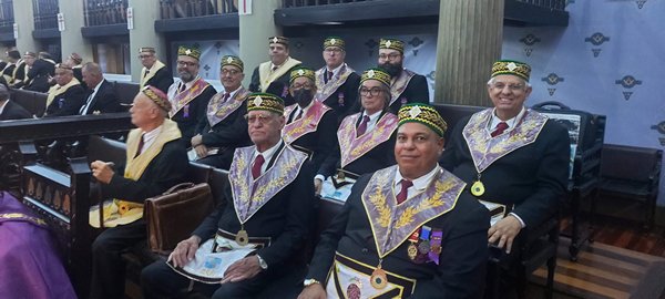 Na foto acima, à partir da esquerda, na primeira fila, os Eminentes Irmãos Delegados Litúrgicos do Rito Brasileiro: JORGE ROMEIRO 33º (8ª Del/RJ) e JÚLIO CESAR DA COSTA 33º (1º, 4ª, 5ª e 7ª DDel.’./MG); na segunda fila, os Eminentes Irmãos FERNANDO GOMES S. JR. (4ª Del/RJ) 33º, PAULO SÉRGIO CARVALHO ATAÍDE 33º (10ª Del.’./RJ) , CÍCERO PAULINO NOGUEIRA 33º (9ª Del/RJ), SERGIO LOPES GOMES 33º (1ª Del.’./RJ) e JOSÉ ANTÔNIO DE FREITAS 33º (6ª Del.’./MG); na última fila, VAGNER PEREIRA DA SILVA 33º (3ª e 7ª DDel.’./RJ e FELIPE EDUARDO PORTELA DE PAULO (2ª Del.’./RJ)