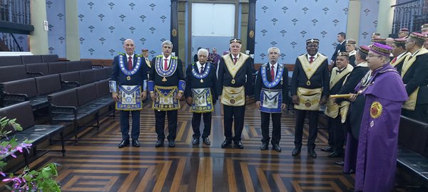 Primeiramente foi realizada a SESSÃO MAGNA DE REGULARIZAÇÃO DO GRAU 33 INVESTIDO EM RITO COIRMÃO NOS ALTOS GRAUS DO RITO BRASILEIRO, dos Irmãos LUIZ FERNANDO SEMERARO 33º, MÁRCIO SHEIN 33º, JOSENBERG MORAIS DE OLIVEIRA 33º e GEORGE DE OLIVEIRA COSTA 33º. (Foto acima)
