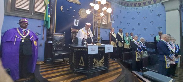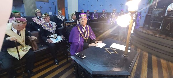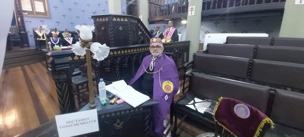 Encerrada a Sessão de Regularização, foi formado o Grande Conselho de Grau 33, presidido pelo Sob.’. Ir.’. NEI INOCENCIO DOS SANTOS 33º, Gr.’. Primaz (Centro); pelo Ser.’. Grande Regente JULIANO COELHO BRAGA 33º (à direita do Primaz) e o Ser.’. Ir.’. Gr.’. Orador GELCY CLOVIS DIAS 33º (à esquerda do Primaz), para a realização da próxima sessão.
