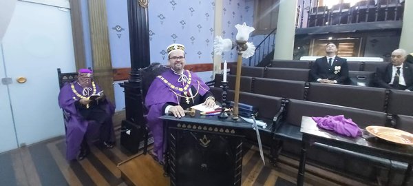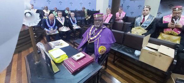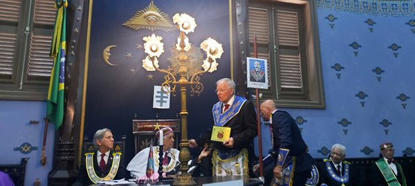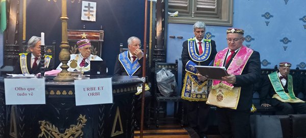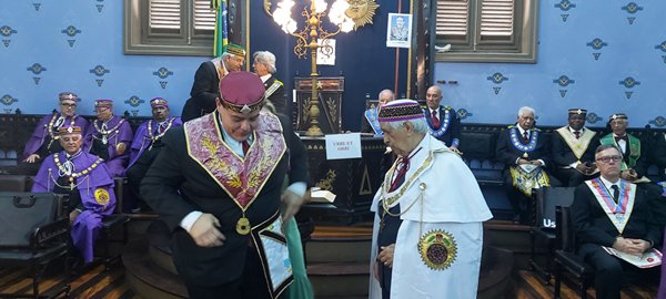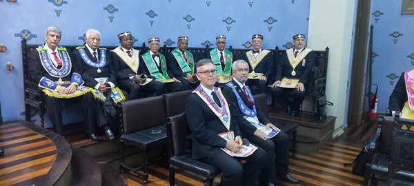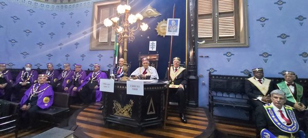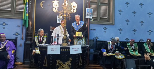 O Sob.’. Ir.’. NEI INOCENCIO DOS SANTOS 33º convidou para tomar assento em seu Altar o Eminente Ir.’. JAISSON MIRANDA BELARDINO, o Grão-Mestre em Exercício do GOB-RJ e o Sap.’. Ir.’. ADEMIR CÂNDIDO DA SILVA, Grão-Mestre Geral Adjunto licenciado do GOB.
