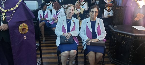 Na foto acima, as cunhadas do Círculo Paramaçônico Feminino: em primeiro plano, as cunhadas LOURDES SALGADO LOPES e IVA VALENTE DOS SANTOS, a primeira dama do Rito; atrás, as cunhadas CECÍLIA RODRIGUES DOS SANTOS e LUZIA CARVALHO PRADO.