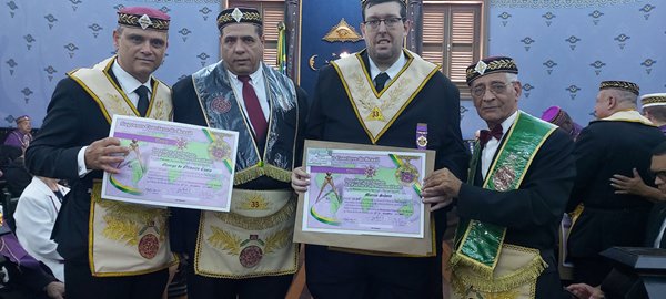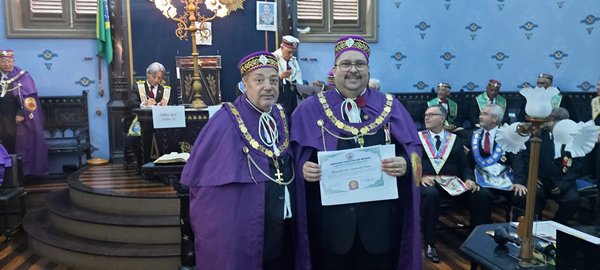 Ainda, foram conferidos os Títulos Distintivos de Membros Beneméritos ao Eminentes Irmãos GUSTAVO FELIPE CARVALHO LIMA 33º e VAGNER PEREIRA DA SILVA 33º, cuja leitura dos Atos foi proferida pelo Ser.’. Ir.’. JULIANO COELHO BRAGA 33º.