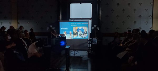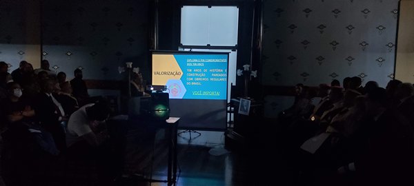 Findas as homenagens, o Ser.’. Ir.’. JULIANO COELHO BRAGA 33º, Grande Regente do Supremo Conclave do Brasil, fez uma apresentação, primeiramente de um vídeo com as principais realizações em 2022, na administração do Conclave, como a nova sede, os novos Diplomas, os Tratados firmados com Grandes Lojas Maçônicas e, depois apresentou o novo aplicativo de gestão, onde o membro do Conclave terá acesso em seu celular ou outra mídia, dos seus dados como datas dos Graus Filosóficos colados, sua carteira de identidade do Rito, geração de boletos, etc. (Fotos abaixo)