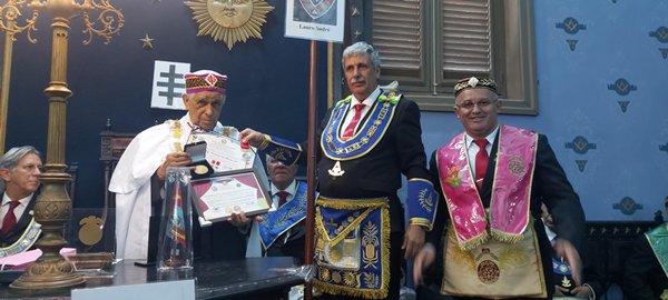 O Sereníssimo Grão-Mestre do Grande Oriente do Estado do Rio de Janeiro, Ir.’. JORGE GOUVEA MELLO, homenageou o Primaz NEI INOCENCIO 33º e o Gr.’. Regente JULIANO BRAGA 33º.