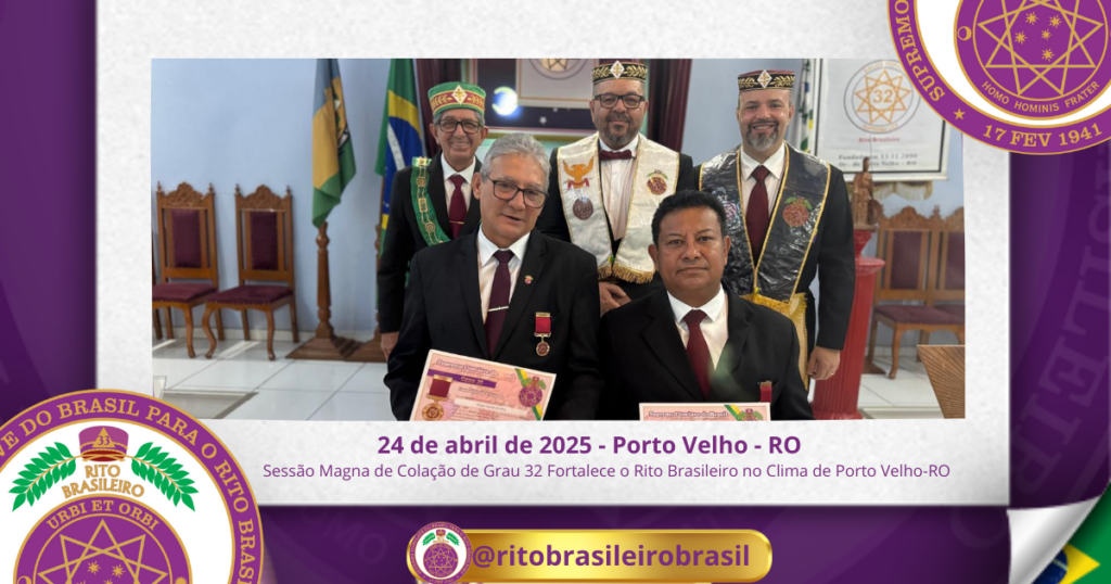 No dia vinte e quatro de abril de dois mil e vinte e cinco, o Colendo Alto Colégio “Estrela de Rondônia” nº 212, ao Clima de Porto Velho-RO, sob a presidência do Egrégio Mestre Francisco Alencar da Silva, realizou uma brilhante Sessão Magna de Colação de Grau 32 – Guardião do Civismo.