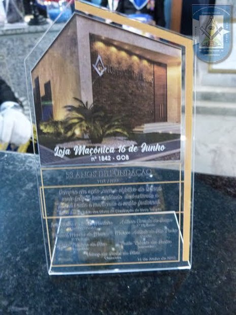 Nas fotos acima, momentos de confraternização e regozijo pelas comemorações do 53º ANIVERSÁRIO DE FUNDAÇÃO DA LOJA MAÇÔNICA 16 DE JULHO Nº 1842, ao Or.’. de Feira de Santana, bem como pela INICIAÇÃO realizada, incorporando ao quadro da Loja, mais 9 (nove) Aprendizes Maçons. Na última foto, o troféu entregue aos Irmãos presentes ao magno evento, reproduzindo a fachada do Novo Templo projetado para a Loja 16 DE JULHO Nº 1842.