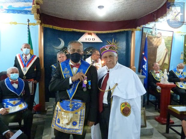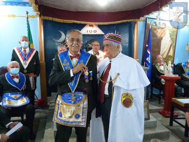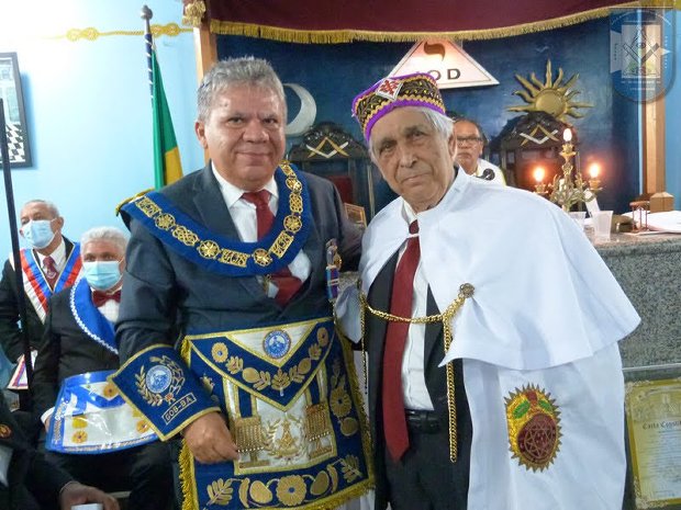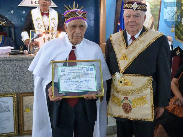 O Ir.’. VALNEY SANTOS recebeu das mãos do Primaz NEI INOCENCIO 33º a sua Comenda do Grau 33 (Foto acima)