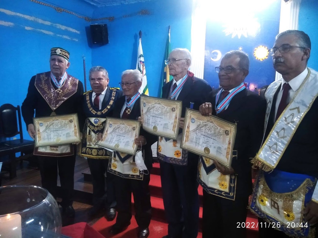 No ensejo o Em.’. Ir.’. OSCIMAR ALVES TORRES, Grão-Mestre Estadual do GOB-BA, devidamente autorizado pelo Sob.’. Ir.’. MÚCIO BONIFÁCIO, homenageou os Irmãos: WALKIRIO VENTURA CARDOSO, JURANDIR DAMASCENO, ANTÔNIO CORDEIRO CAVALCANTI e GERENALDO SOUZA DE ARAÚJO, procedendo a entrega da COMENDA D. PEDRO I com o Respectivo Diploma, passando a ostentarem o Título Distintivo de Sapientíssimos Irmãos.