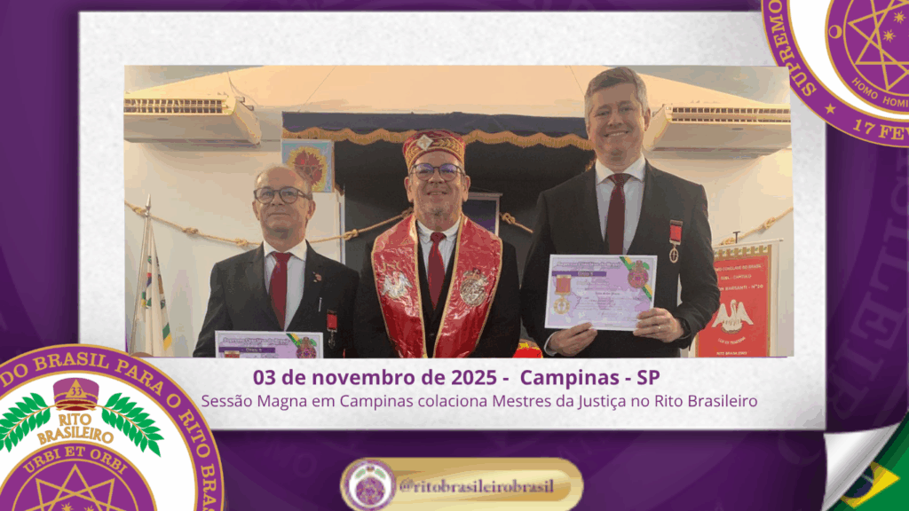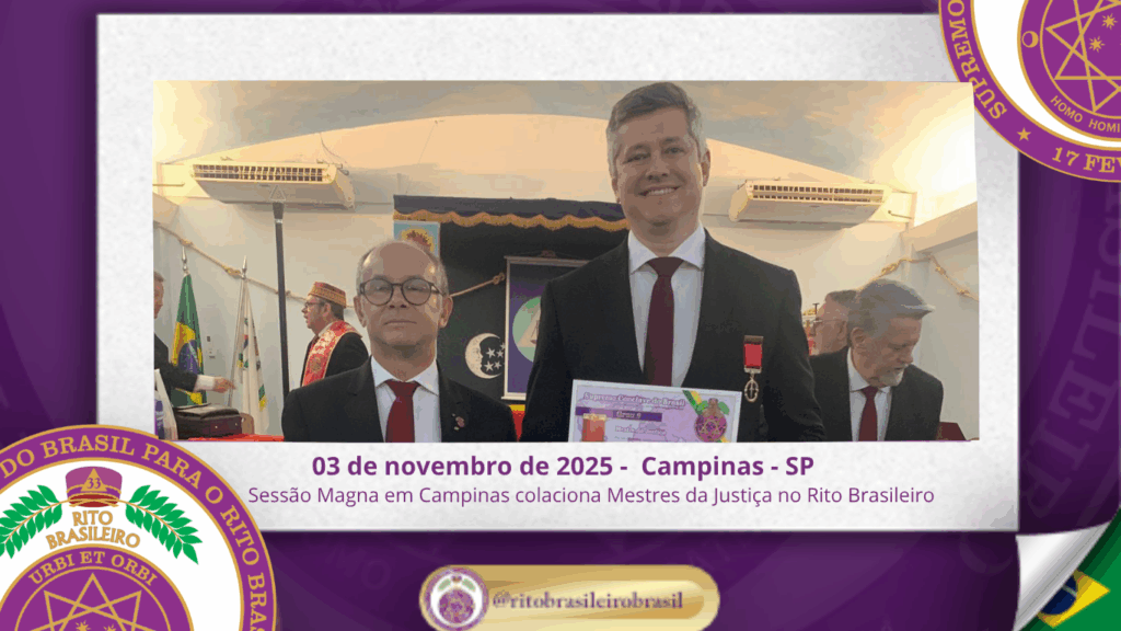 No dia 3 de novembro de 2025, o Ilustre e Sublime Capítulo Ir∴ Edson Barsanti nº 20, ao Vale de Campinas/SP, realizou uma significativa Sessão Magna de Colação do Grau 9 – Mestre da Justiça, reforçando o crescimento e o fortalecimento do Rito Brasileiro de Maçons Antigos, Livres e Aceitos ao Clima de São Paulo.