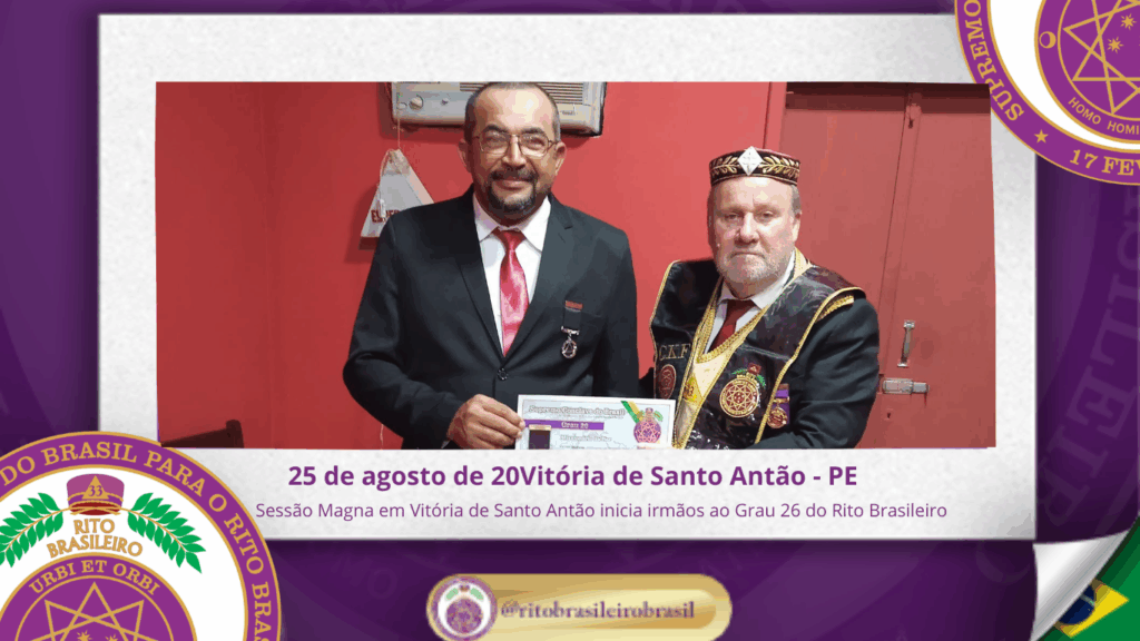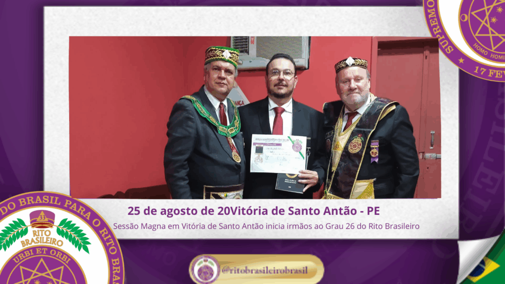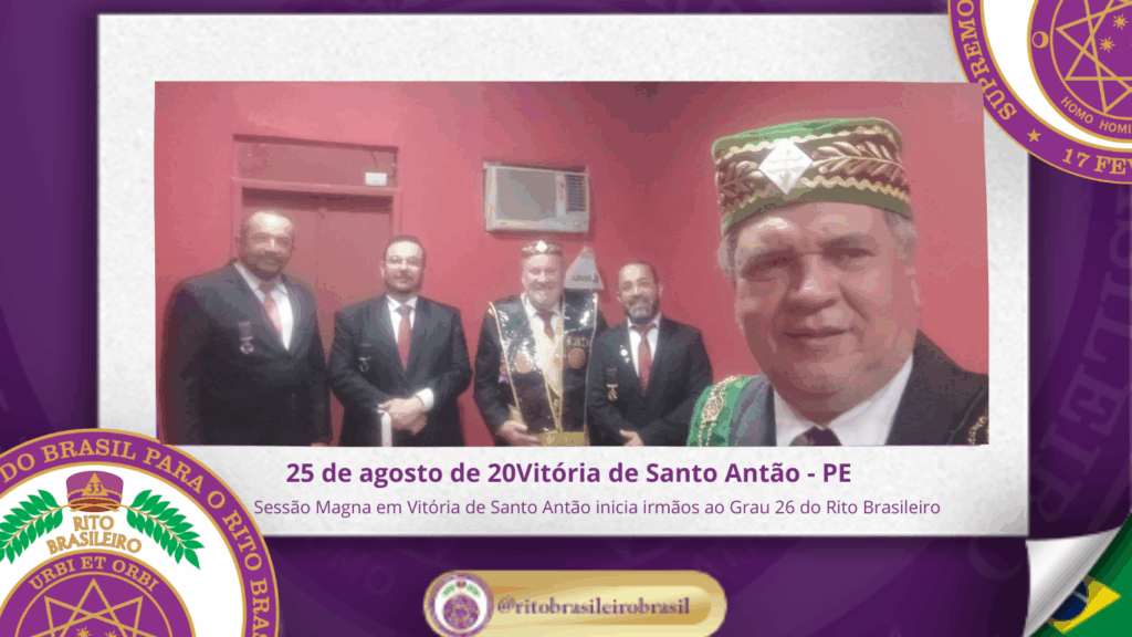 O Supremo Conclave do Brasil para o Rito Brasileiro de Maçons Antigos, Livres e Aceitos, por meio do Poderoso Grande Conselho Kadosch Filosófico José Firmo Xavier, nº 173, jurisdicionado à 1ª Delegacia Litúrgica de Pernambuco, realizou ao Clima de Vitória de Santo Antão uma memorável Sessão Magna de Iniciação ao Grau 26 – Missionário da Paz da hierarquia dos Altos Graus do Rito Brasileiro.