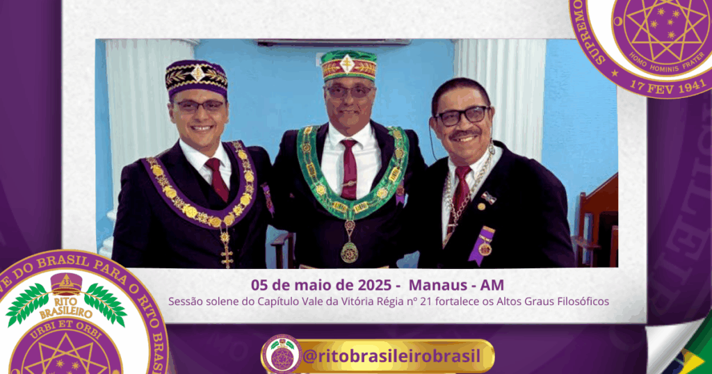 No dia cinco de maio de dois mil e vinte e cinco, o Ilustre e Sublime Capítulo Vale da Vitória Régia, nº 21, ao Clima de Manaus, realizou uma marcante e fraterna sessão, repleta de significativos momentos para o fortalecimento do Rito Brasileiro de Maçons Antigos, Livres e Aceitos.