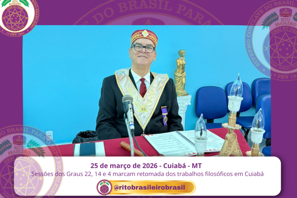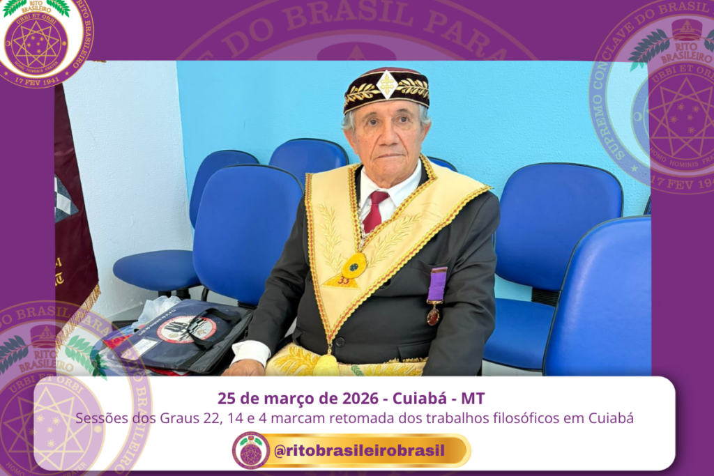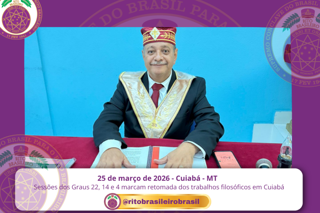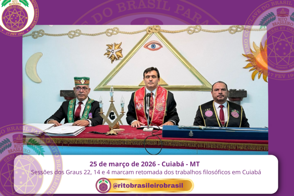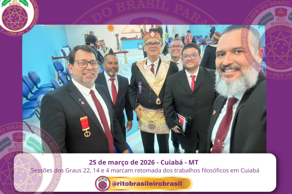 No dia 25 de março de 2026, o Vale de Cuiabá, no Clima de Mato Grosso, foi novamente iluminado pelos trabalhos dos Corpos Filosóficos do Rito Brasileiro de Maçons Antigos, Livres e Aceitos, com a realização de Sessões nos Graus 22 – Missionário da Economia, 14 – Mestre da Perseverança e 4 – Mestre da Discrição.