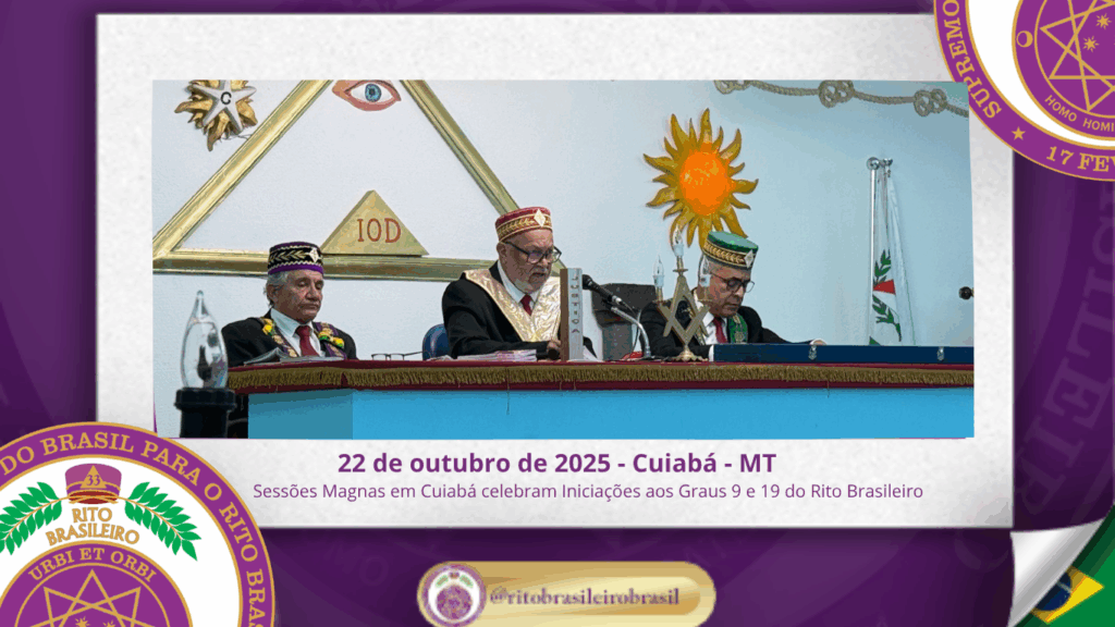 No dia vinte e dois de outubro de dois mil e vinte e cinco, ao Clima de Cuiabá-MT, realizaram-se sublimes Sessões Magnas que exaltaram os ideais do Rito Brasileiro e promoveram o contínuo aperfeiçoamento dos Ilustres e Poderosos Irmãos que trilham os Altos Graus Filosóficos.