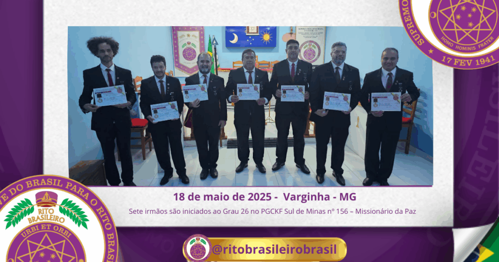 Na ocasião, foi realizada a iniciação ao Grau 26 – Missionário da Paz, de sete Ilustres Irmãos: Anderson Costa Zampieri, Francisco Scinocca, Gilmar José da Silva, João Paulo Alvarenga da Silva, Ramiro Custódio de Souza Júnior, Thaylor Rodrigues Duarte e Walid Abdala Tauil.