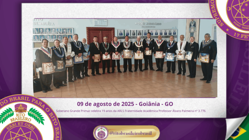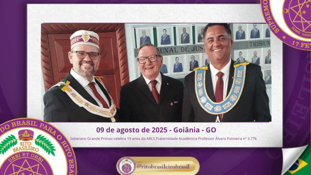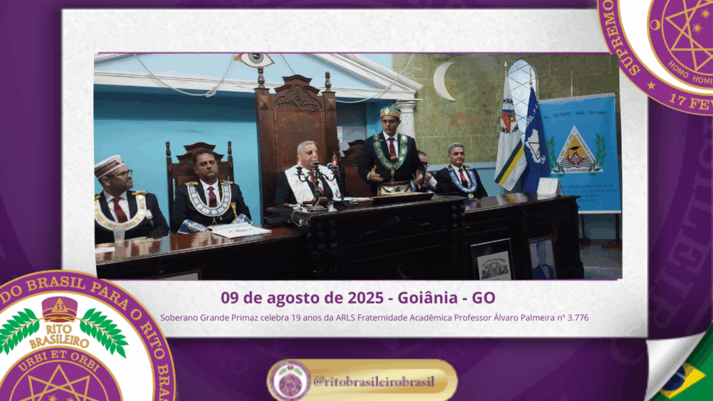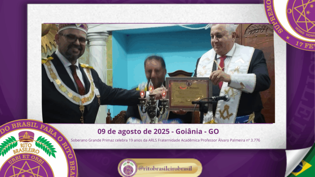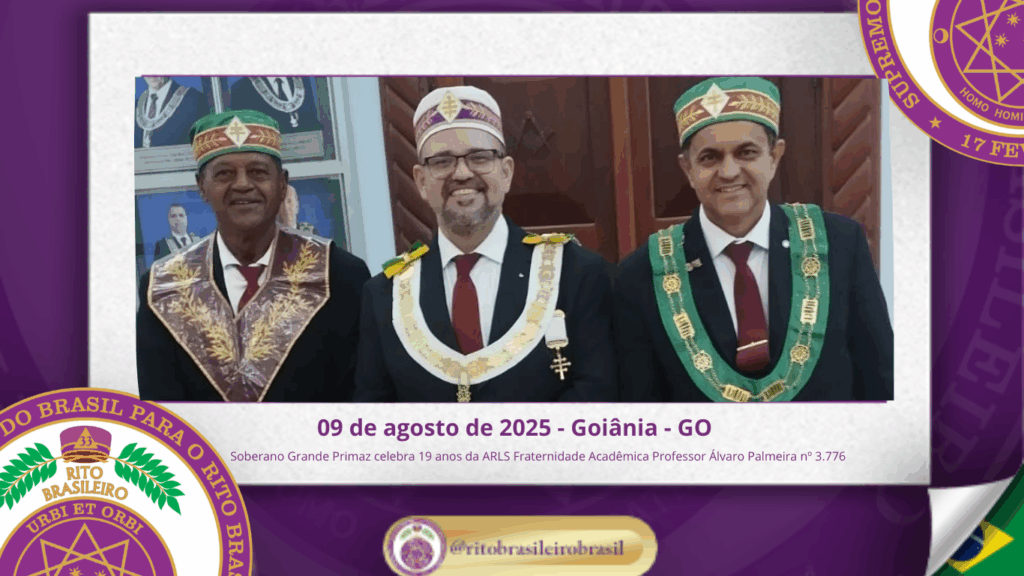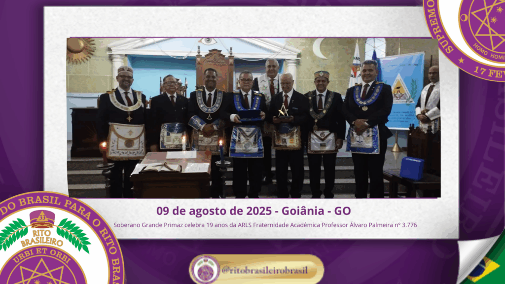 No dia nove de agosto de dois mil e vinte e cinco, o Soberano Grande Primaz Juliano Coelho Braga esteve presente nas comemorações do 19º aniversário da Augusta e Respeitável Loja Simbólica Fraternidade Acadêmica Professor Álvaro Palmeira nº 3.776, ao Oriente de Goiânia – GO.
