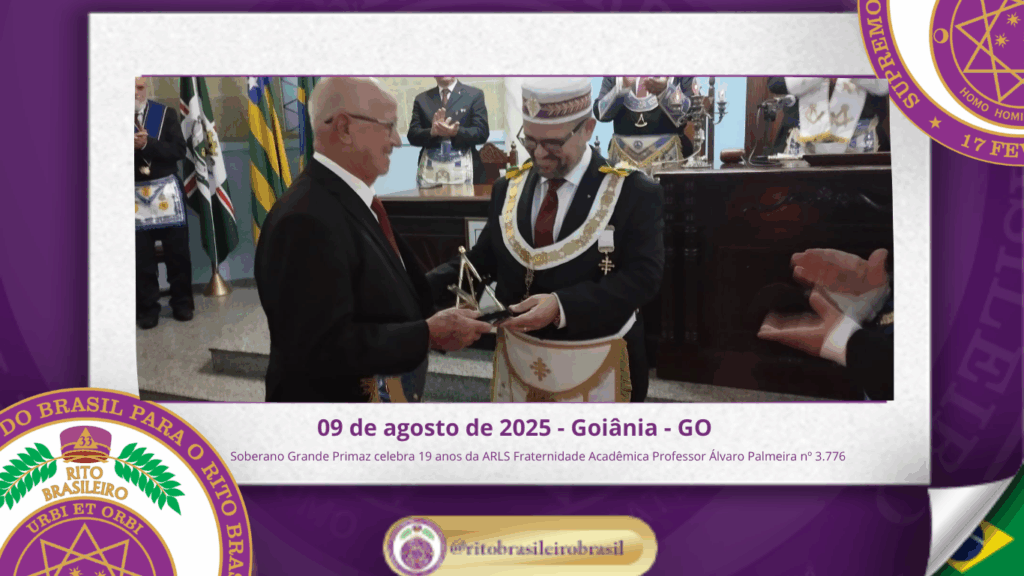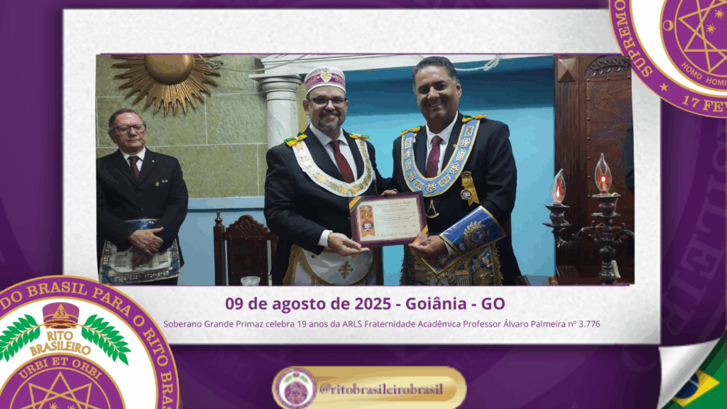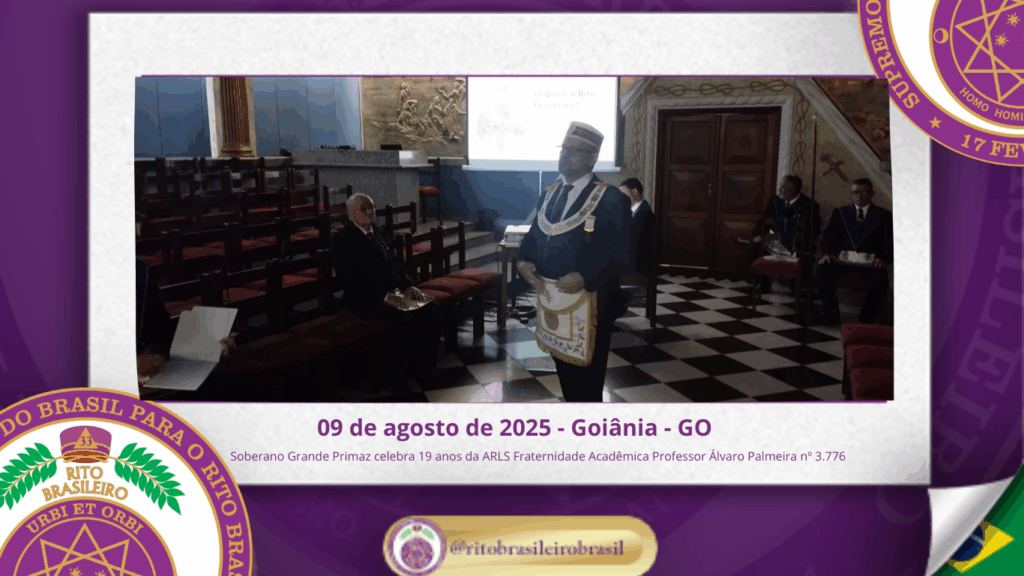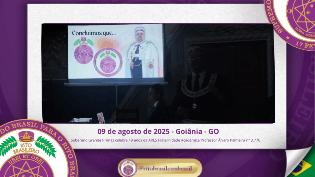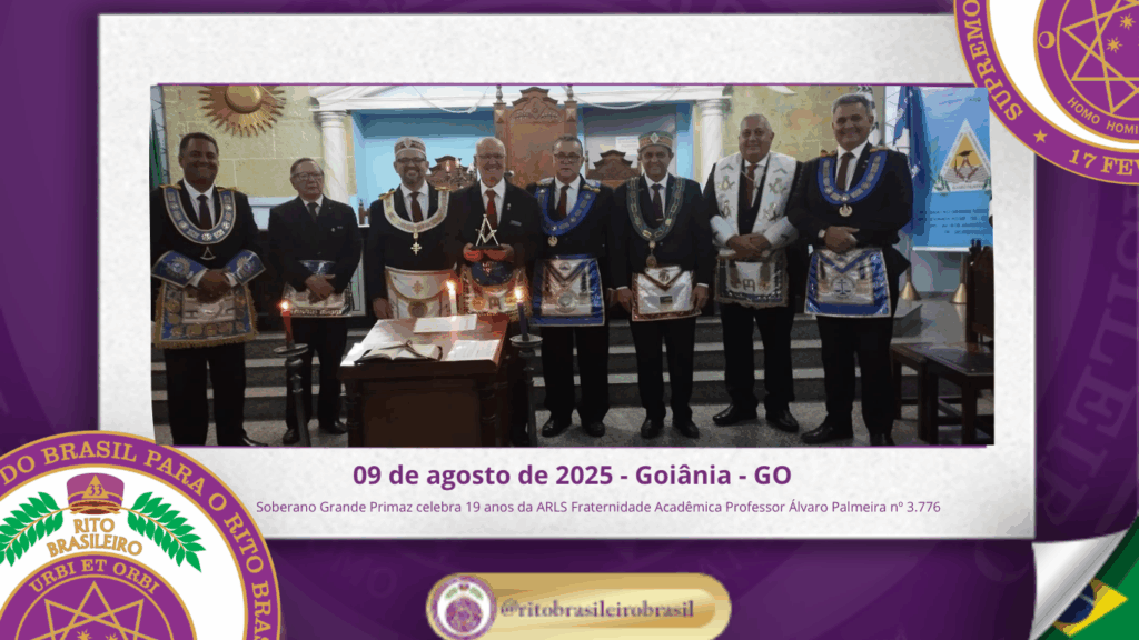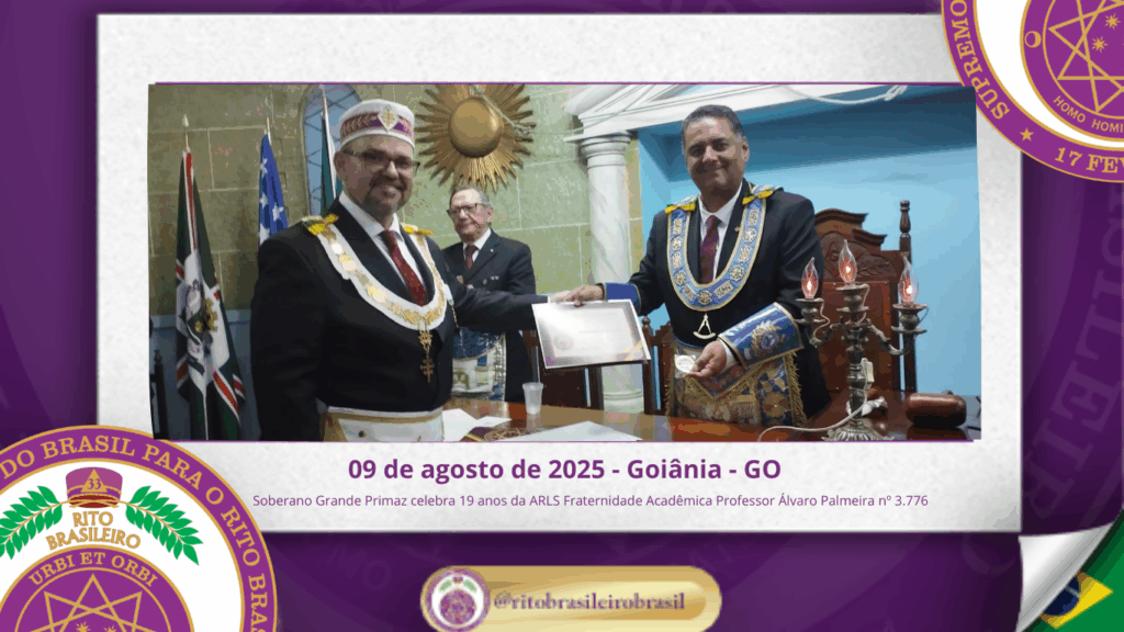 No dia nove de agosto de dois mil e vinte e cinco, o Soberano Grande Primaz Juliano Coelho Braga esteve presente nas comemorações do 19º aniversário da Augusta e Respeitável Loja Simbólica Fraternidade Acadêmica Professor Álvaro Palmeira nº 3.776, ao Oriente de Goiânia – GO.