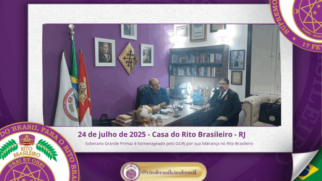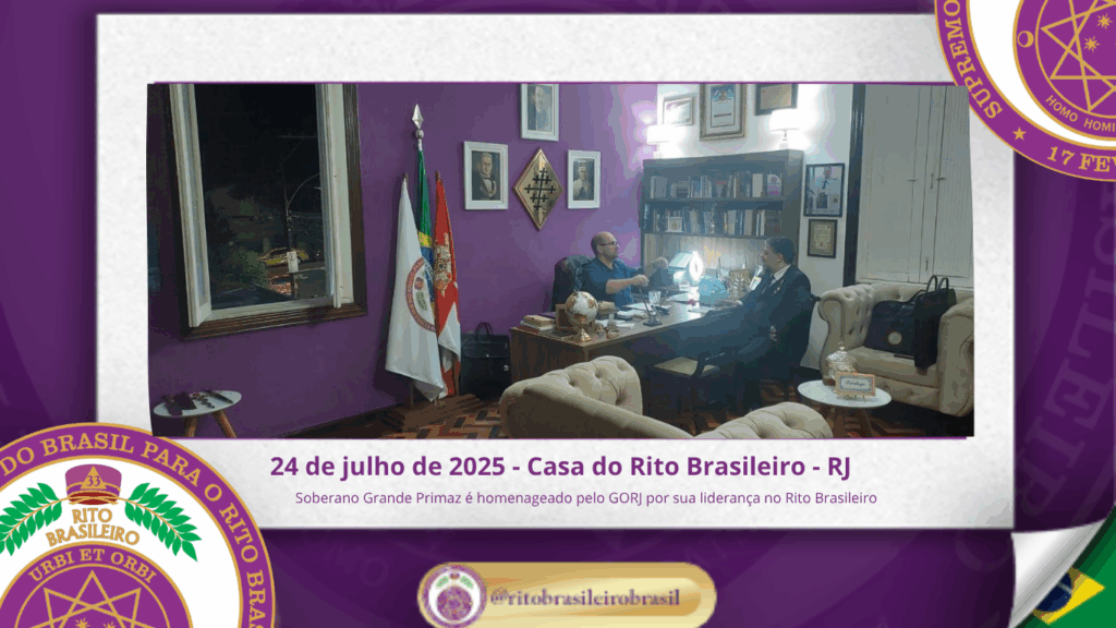 No dia vinte e quatro de julho de dois mil e vinte e cinco, em reunião realizada no Gabinete do Soberano Grande Primaz, na sede da Casa do Rito Brasileiro, situada à Rua Fontes Castelo, nº 16 – Alto da Boa Vista, ao Oriente do Rio de Janeiro, o Grande Oriente do Rio de Janeiro (GORJ) prestou uma significativa homenagem ao líder maior do Supremo Conclave do Brasil.