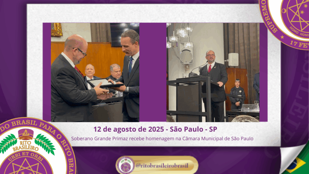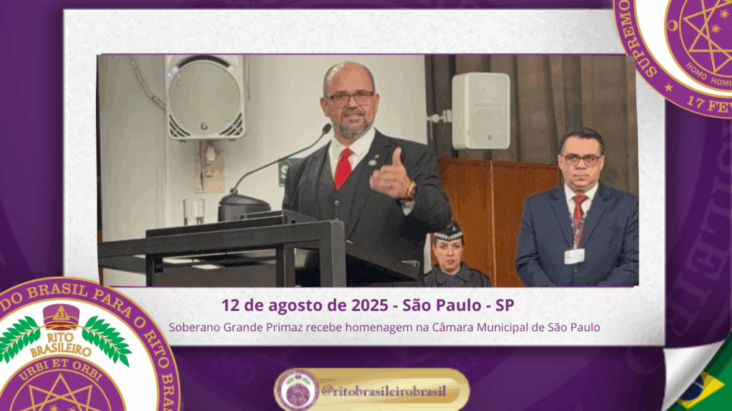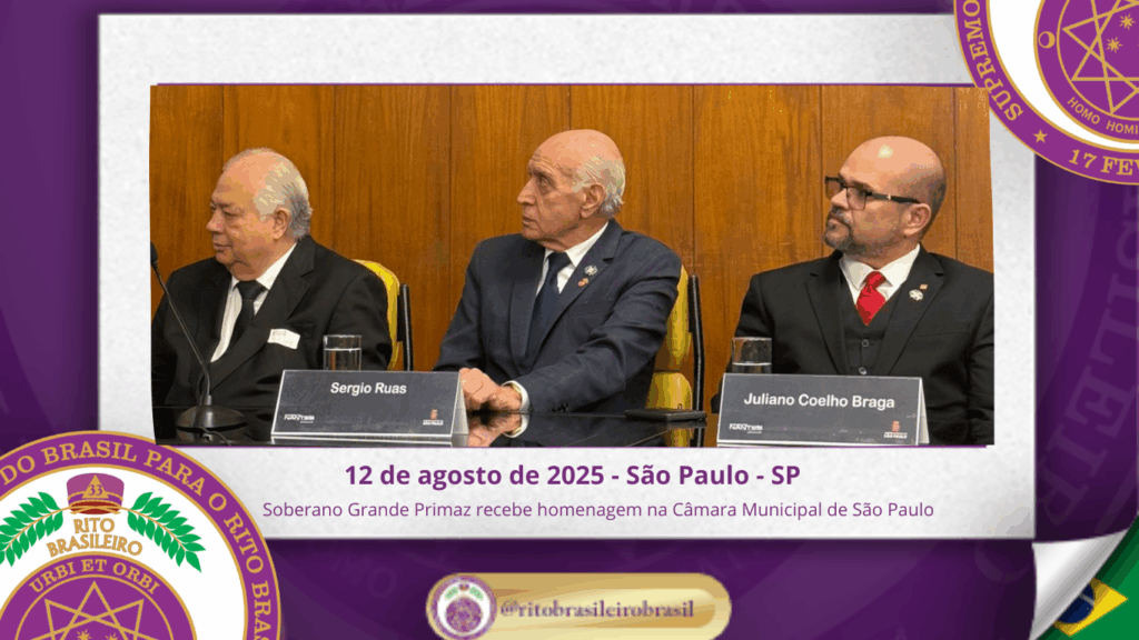 No dia treze de agosto de dois mil e vinte e cinco, o Soberano Grande Primaz, Juliano Coelho Braga, acompanhado do Sapientíssimo Irmão Nei Inocêncio dos Santos, Grande Primaz Emérito, do Sereníssimo Irmão Cesar Dourado, Grande Regente do Supremo Conclave do Brasil, do Sereníssimo Irmão José Teruo Mizuno, Grande Secretário do Interior, do Eminente Irmão Antonio Sérgio Bassetti Naccarato, Delegado Litúrgico da 2ª Delegacia Estadual do Rito Brasileiro de São Paulo, do Eminente Irmão Anderson da Silva Dias, Delegado Litúrgico da 4ª Delegacia Estadual do Rito Brasileiro de São Paulo, e do Eminente Irmão Evandro Cesar Pires Rizzo, Delegado Litúrgico da 7ª Delegacia Estadual do Rito Brasileiro de São Paulo, participou de uma solenidade que contou com diversas autoridades do Grande Oriente do Brasil, da Grande Loja Maçônica e da COMAB.