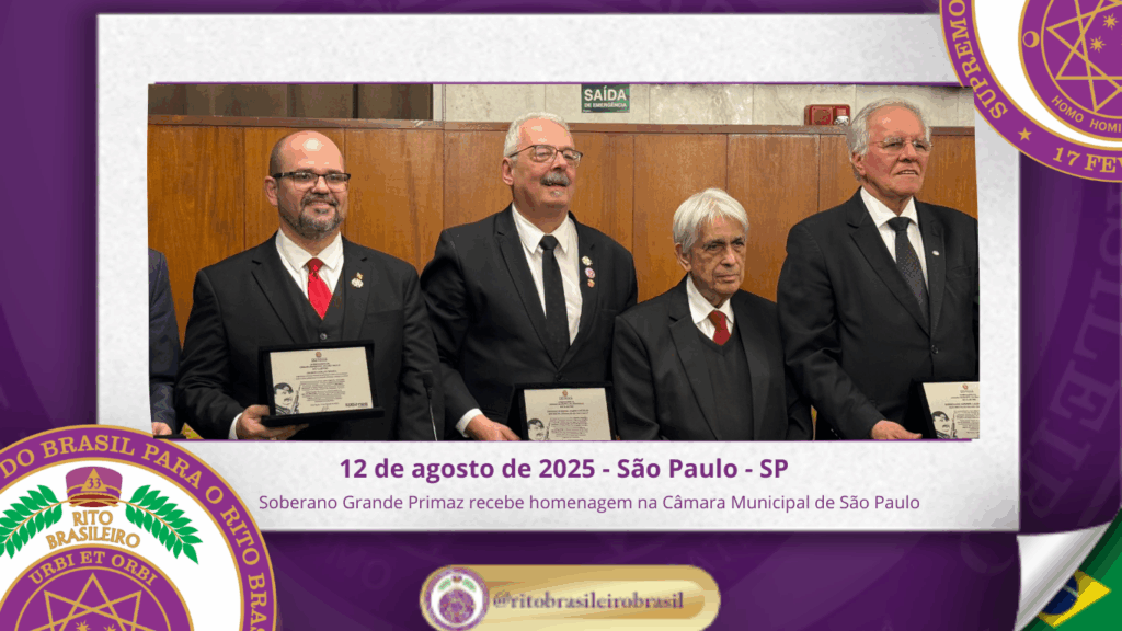 Em retribuição, o Soberano presenteou o Vereador Sargento Nantes e a Câmara Municipal de São Paulo com a Comenda Comemorativa dos 110 Anos do Rito Brasileiro, celebrando a história e a relevância desta tradição maçônica nacional.