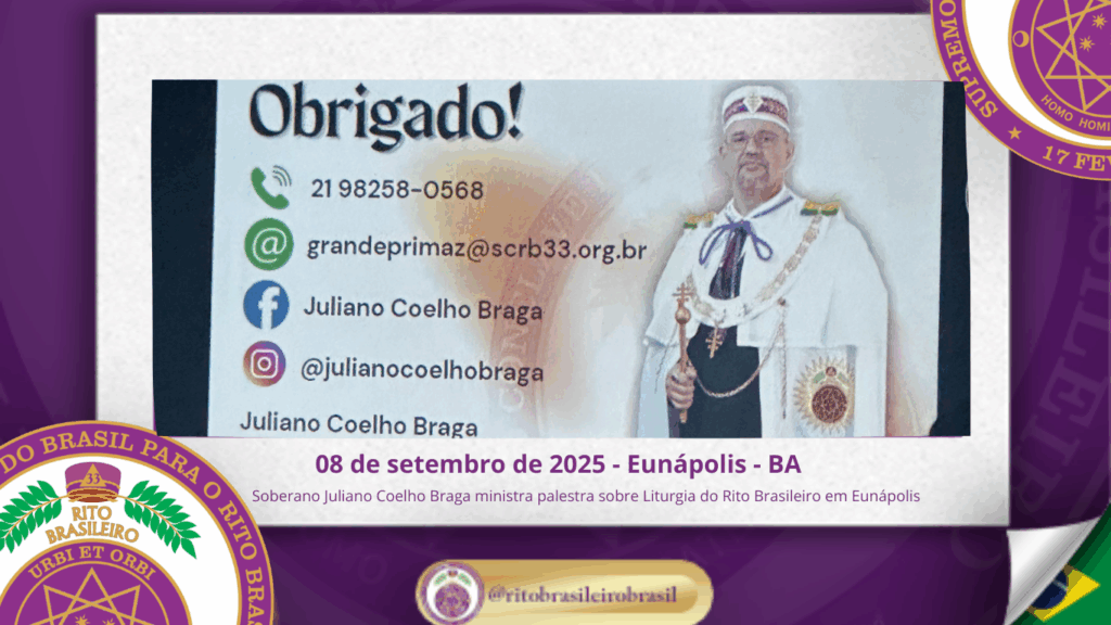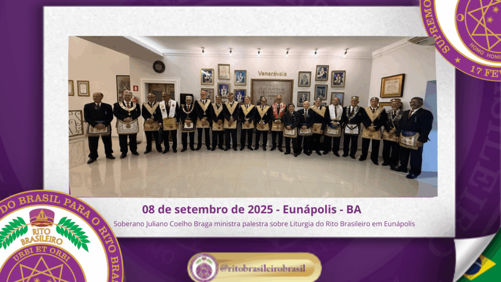 No dia oito de setembro de dois mil e vinte e cinco, o Soberano Grande Primaz do Rito Brasileiro, Juliano Coelho Braga, realizou uma enriquecedora palestra sobre Filosofia e Liturgia do Rito Brasileiro na Augusta e Respeitável Loja Simbólica Fraternidade 5 de Novembro nº 1892, ao Oriente de Eunápolis, no Estado da Bahia. A Loja é jurisdicionada ao Grande Oriente do Brasil – Baiano e federada ao Grande Oriente do Brasil.