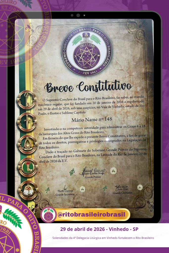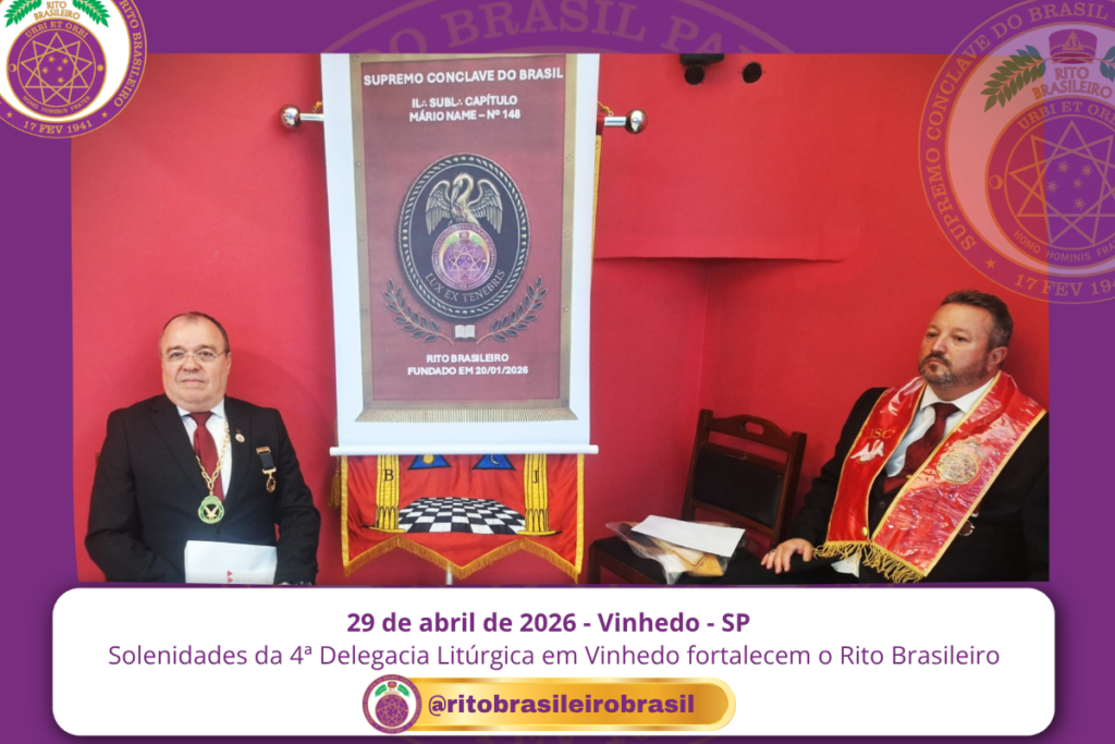 No dia 29 de março de 2026, a 4ª Delegacia Litúrgica do Rito Brasileiro, com sede ao Clima de Vinhedo/SP, realizou importantes solenidades que marcaram o fortalecimento do Rito Brasileiro de Maçons Antigos, Livres e Aceitos no interior paulista.
