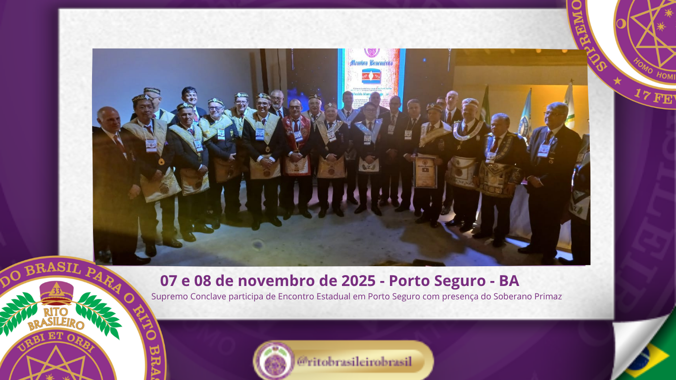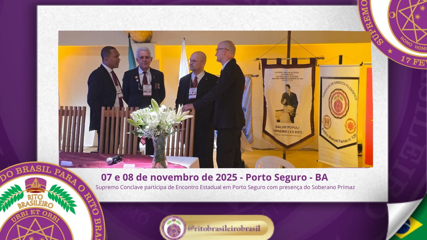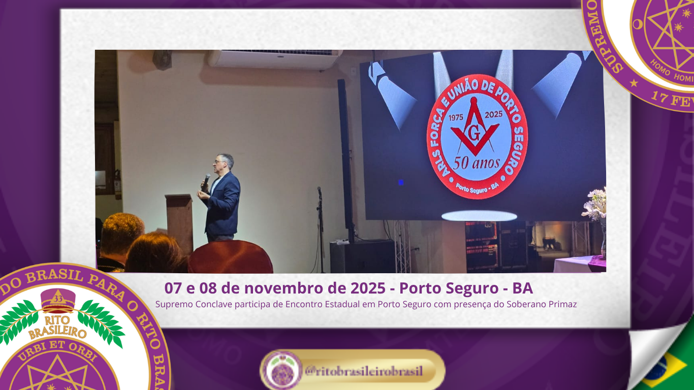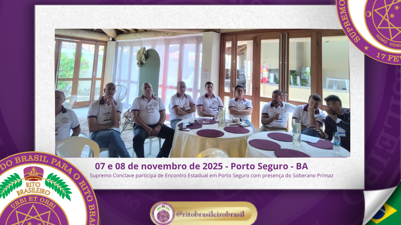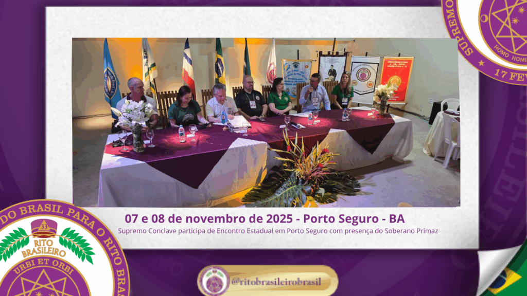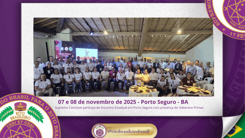 No dia sete de novembro de dois mil e vinte e cinco, teve início o IX Encontro Estadual do Rito Brasileiro ao Vale de Porto Seguro, ao Clima da Bahia, em conjunto com o III Encontro Estadual da Fraternidade Feminina Cruzeiro do Sul do GOB-Baiano, com cerimônia de abertura realizada no templo da Augusta e Respeitável Loja Simbólica Força e União de Porto Seguro nº 41, federada ao Grande Oriente do Brasil e jurisdicionada ao GOB-Baiano.