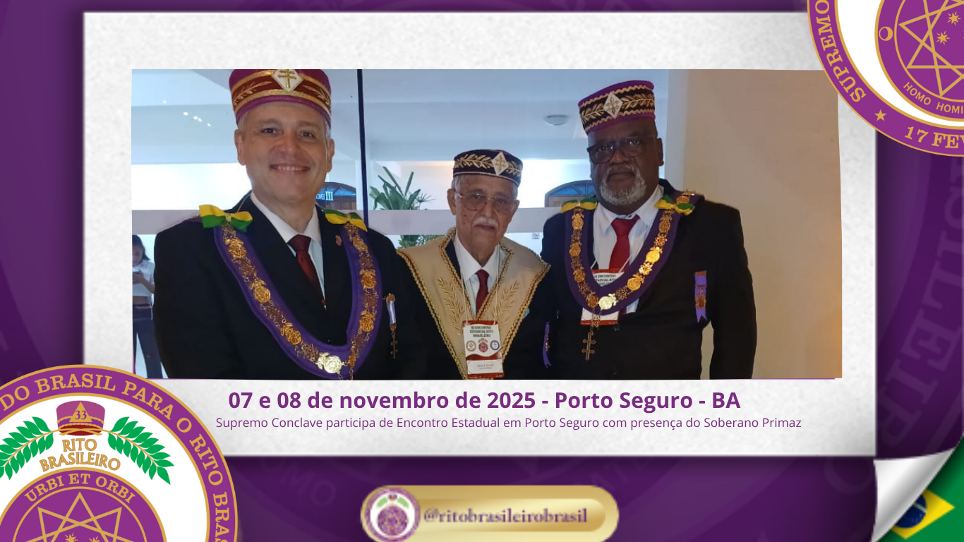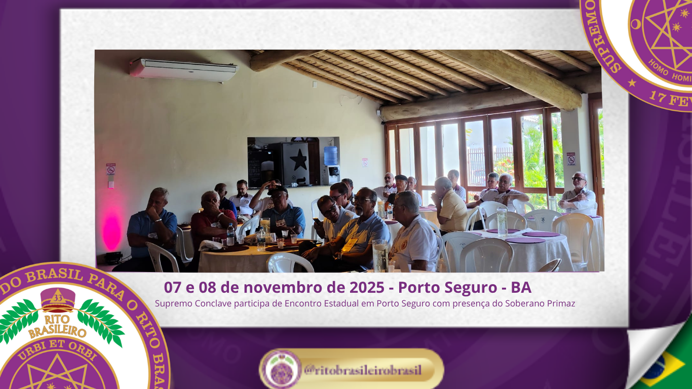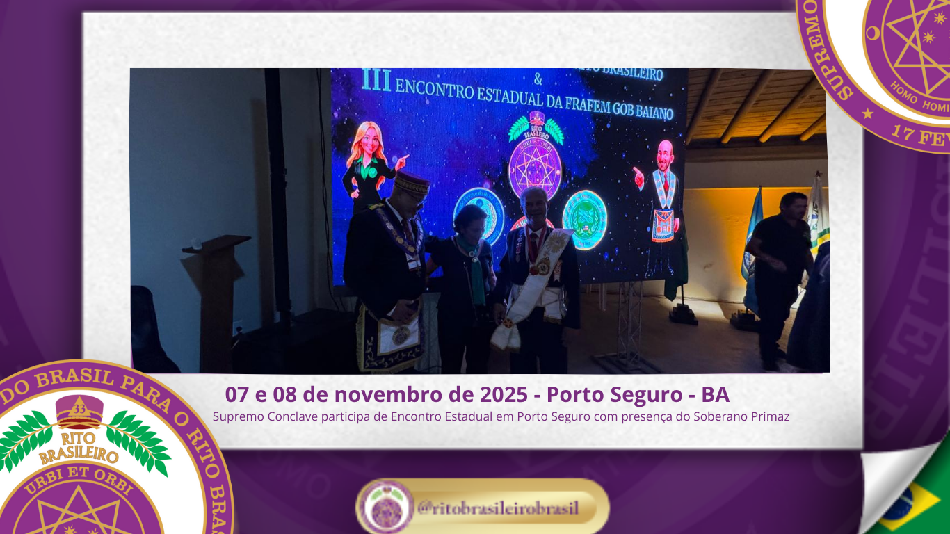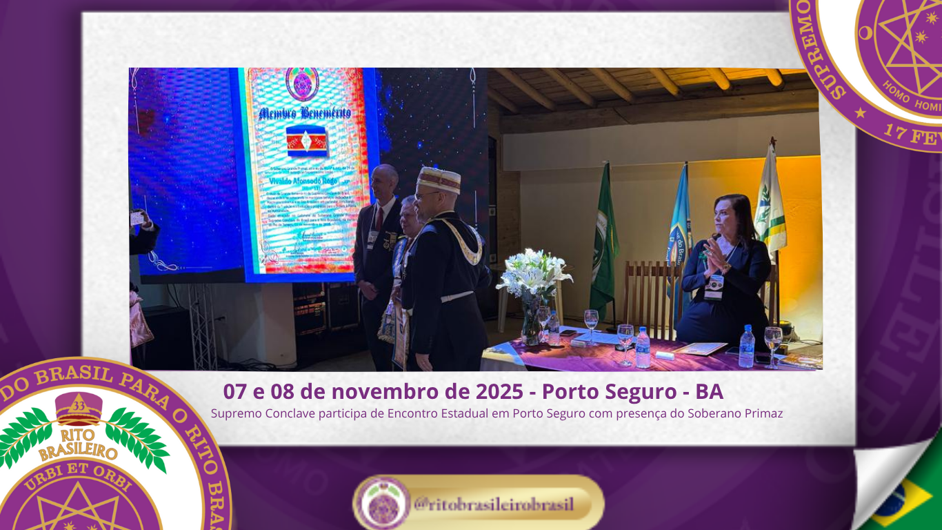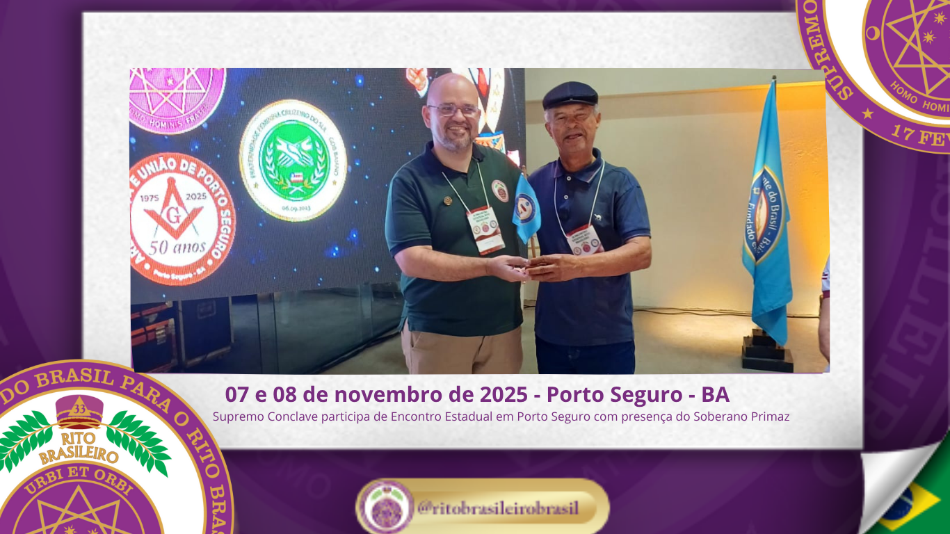 No dia sete de novembro de dois mil e vinte e cinco, teve início o IX Encontro Estadual do Rito Brasileiro ao Vale de Porto Seguro, ao Clima da Bahia, em conjunto com o III Encontro Estadual da Fraternidade Feminina Cruzeiro do Sul do GOB-Baiano, com cerimônia de abertura realizada no templo da Augusta e Respeitável Loja Simbólica Força e União de Porto Seguro nº 41, federada ao Grande Oriente do Brasil e jurisdicionada ao GOB-Baiano.