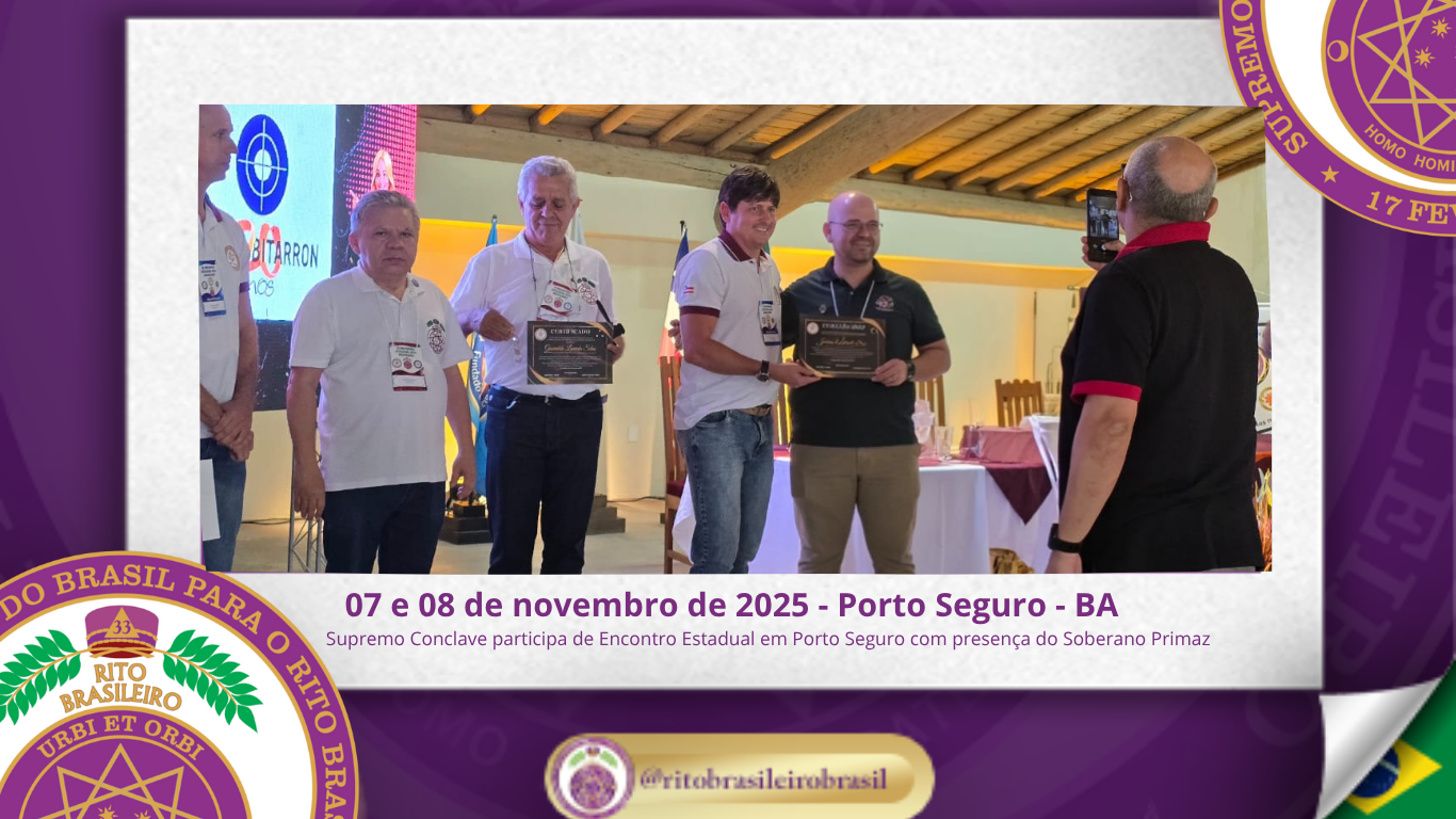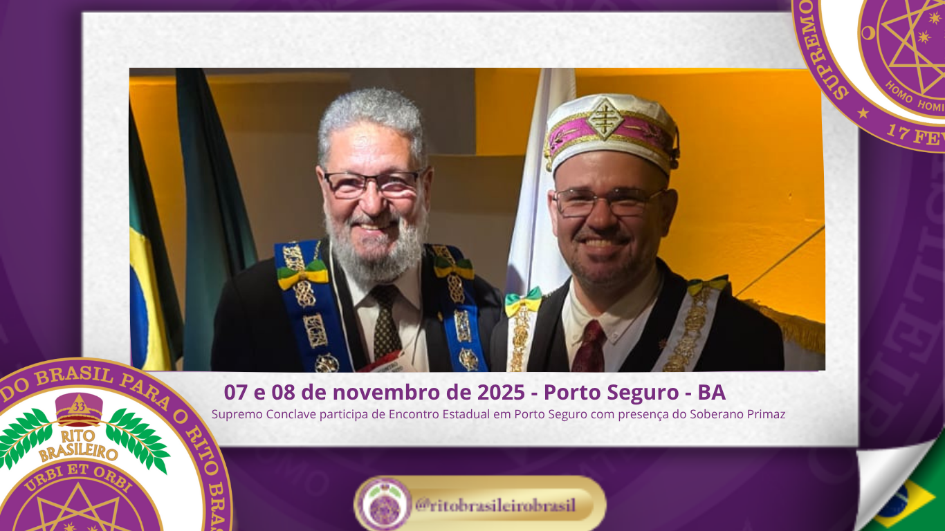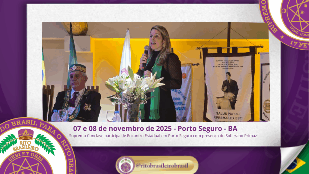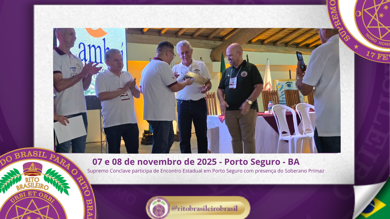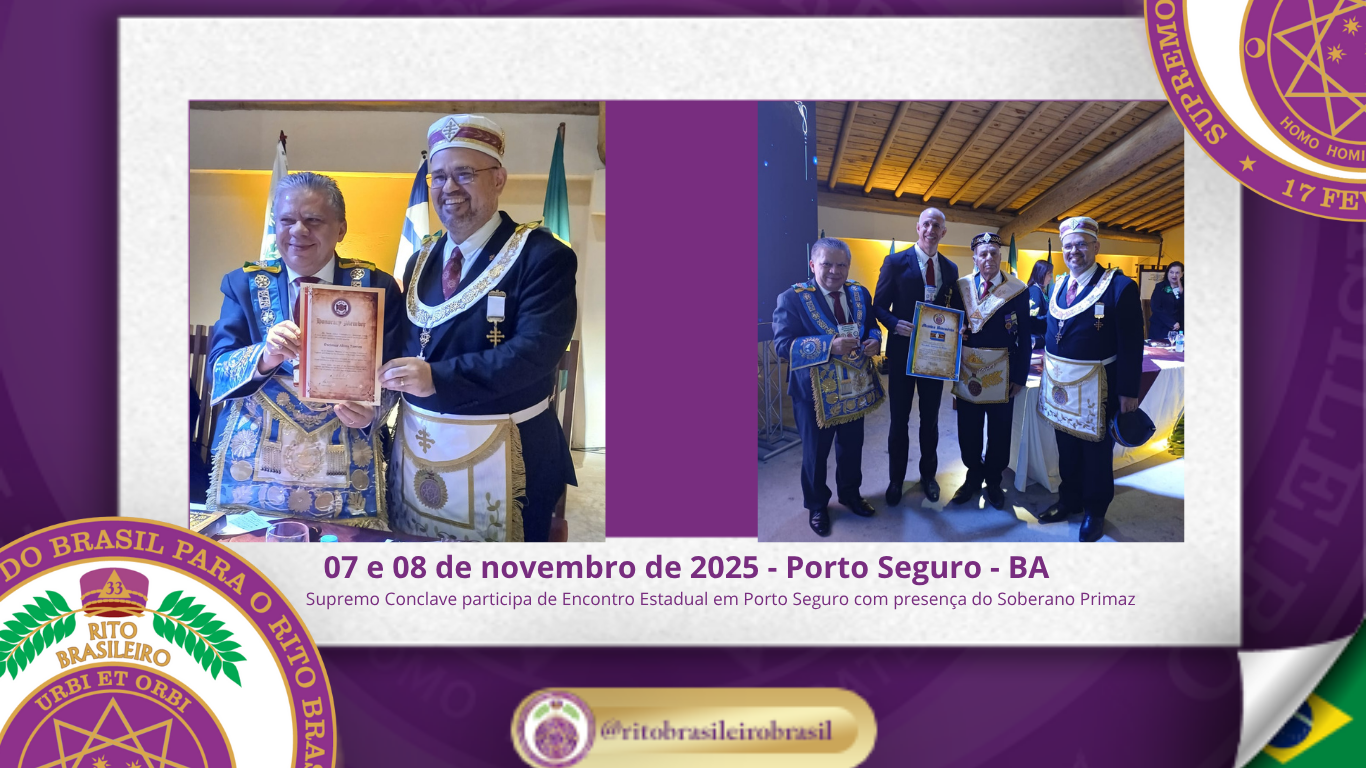 No dia sete de novembro de dois mil e vinte e cinco, teve início o IX Encontro Estadual do Rito Brasileiro ao Vale de Porto Seguro, ao Clima da Bahia, em conjunto com o III Encontro Estadual da Fraternidade Feminina Cruzeiro do Sul do GOB-Baiano, com cerimônia de abertura realizada no templo da Augusta e Respeitável Loja Simbólica Força e União de Porto Seguro nº 41, federada ao Grande Oriente do Brasil e jurisdicionada ao GOB-Baiano.
