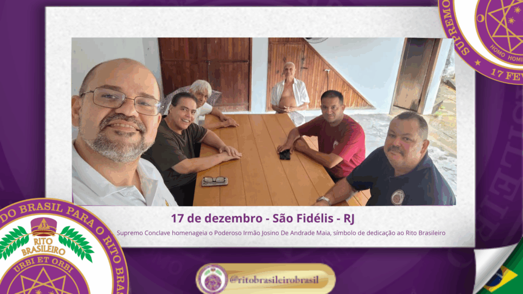 No dia dezessete de dezembro de dois mil e vinte e cinco, retornando do Oriente de Montes Claros – Minas Gerais, o Soberano Grande Primaz do Rito Brasileiro, Juliano Coelho Braga, realizou uma visita de grande significado fraterno ao Oriente de São Fidélis – Estado do Rio de Janeiro, para encontrar-se com o Poderoso Irmão Josino De Andrade Maia, um dos mais dedicados obreiros do Rito Brasileiro em plena atividade.