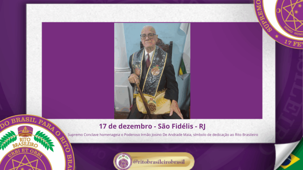 Essa constância, aliada à humildade e ao firme compromisso fraterno, torna o Irmão Josino um verdadeiro servidor da Ordem, da Pátria e da Humanidade, sendo digno de toda reverência por parte do Supremo Conclave do Brasil.