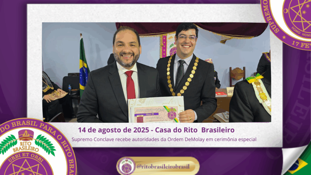 No dia quatorze de agosto de dois mil e vinte e cinco, na Sede do Supremo Conclave do Brasil, ao Vale do Rio de Janeiro, foi realizada uma cerimônia especial de concessão de diversos Graus da Hierarquia do Rito Brasileiro.