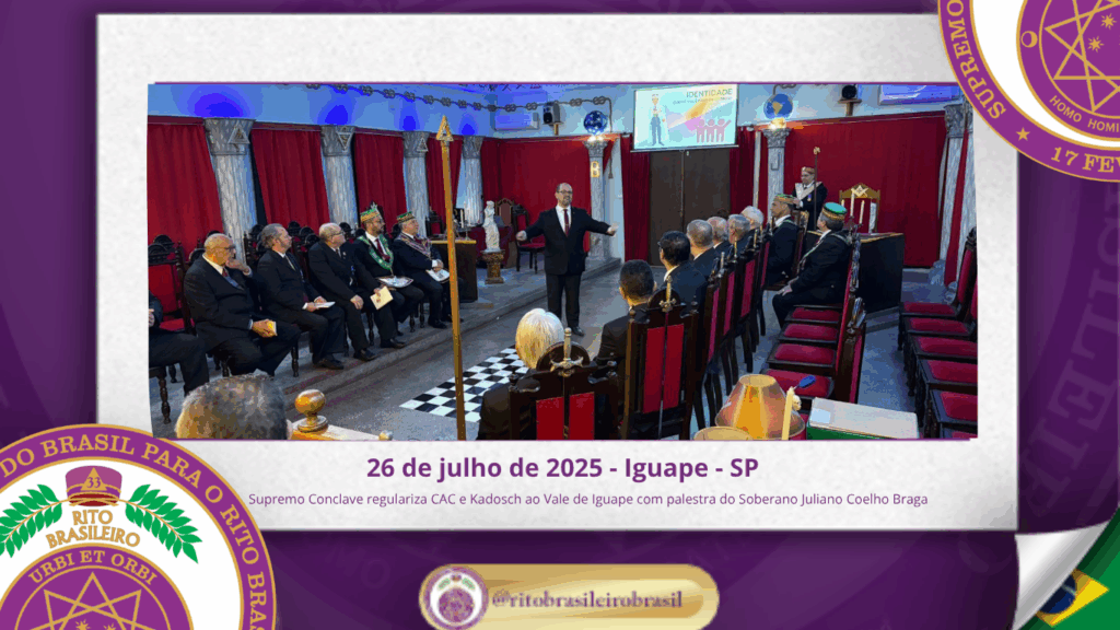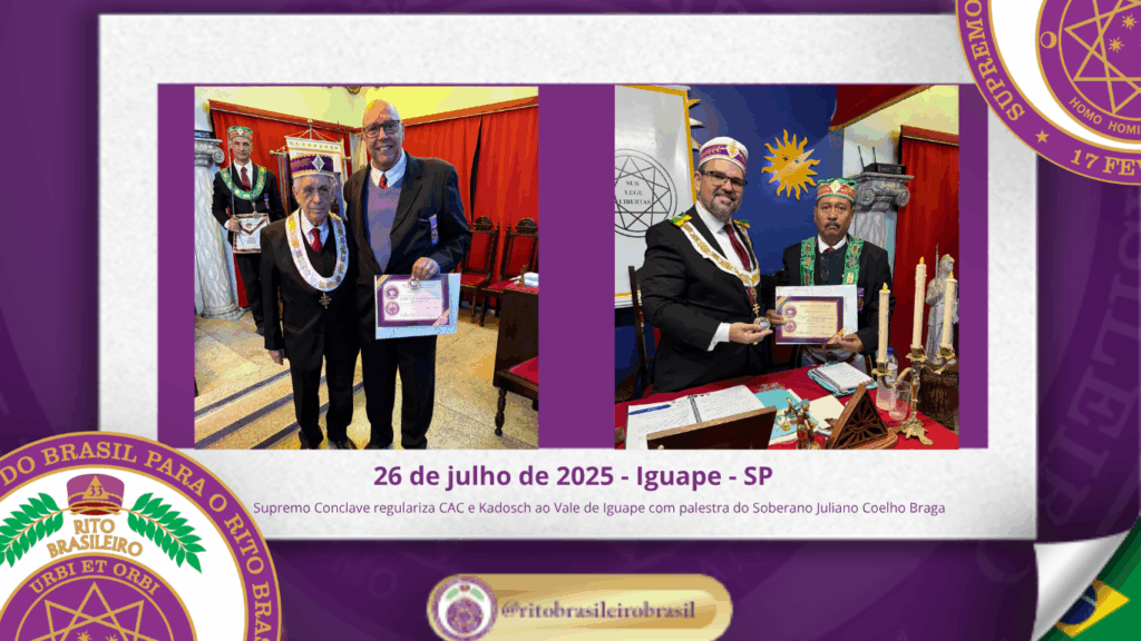 No dia vinte e seis de julho de dois mil e vinte e cinco, foi realizada a Sessão Magna de Regularização do Colendo Alto Colégio Irmão Romeu da Silva – nº 252 e do Poderoso Grande Conselho Kadosch Filosófico Gentil Epaminondas de Carvalho – nº 186, ao Vale de Iguape, no Estado de São Paulo.