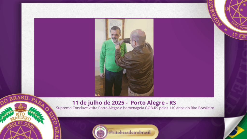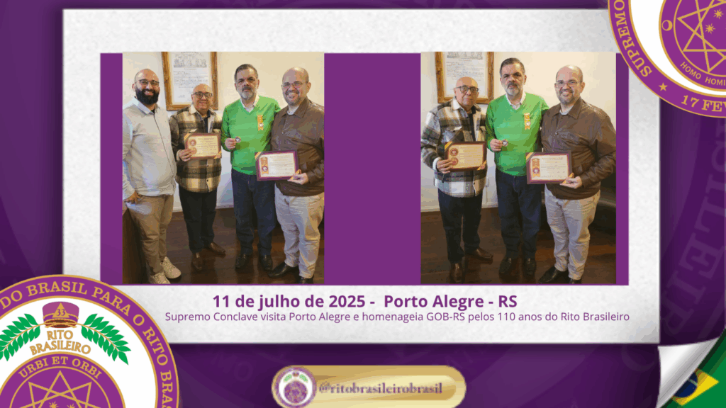 No dia onze de julho do ano de dois mil e vinte e cinco, o Supremo Conclave do Brasil realizou uma visita oficial ao Oriente de Porto Alegre, Estado do Rio Grande do Sul, marcando mais um importante capítulo na história do fortalecimento institucional do Rito Brasileiro de Maçons Antigos, Livres e Aceitos no Sul do país.
