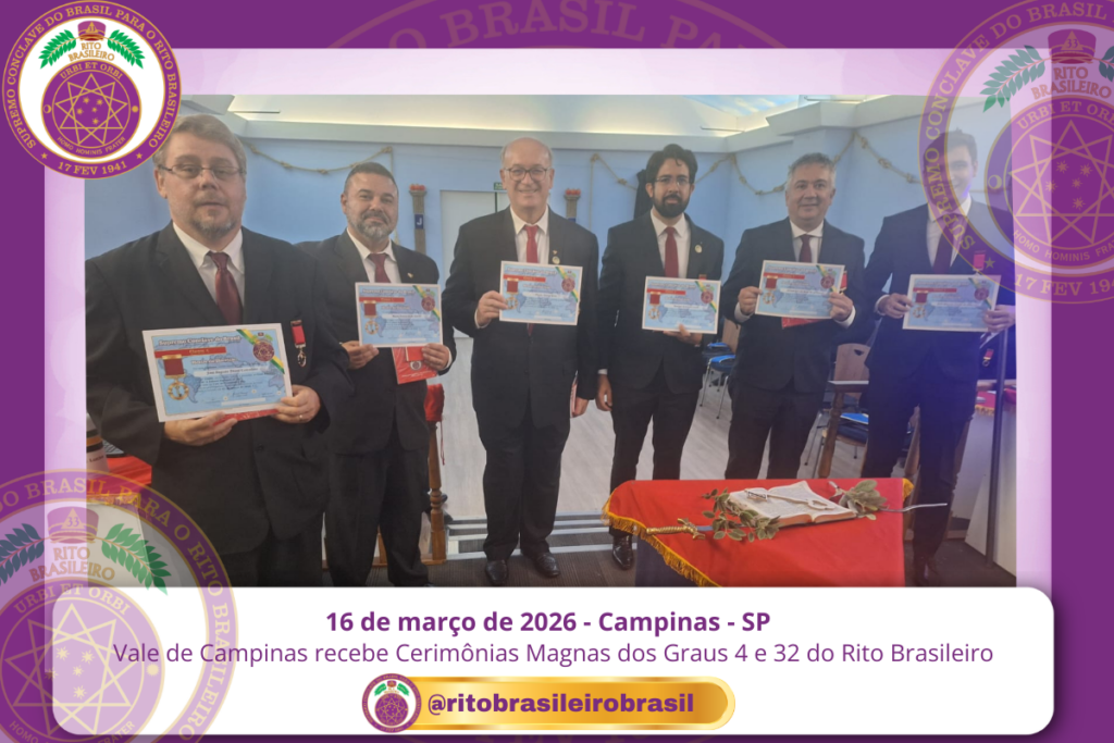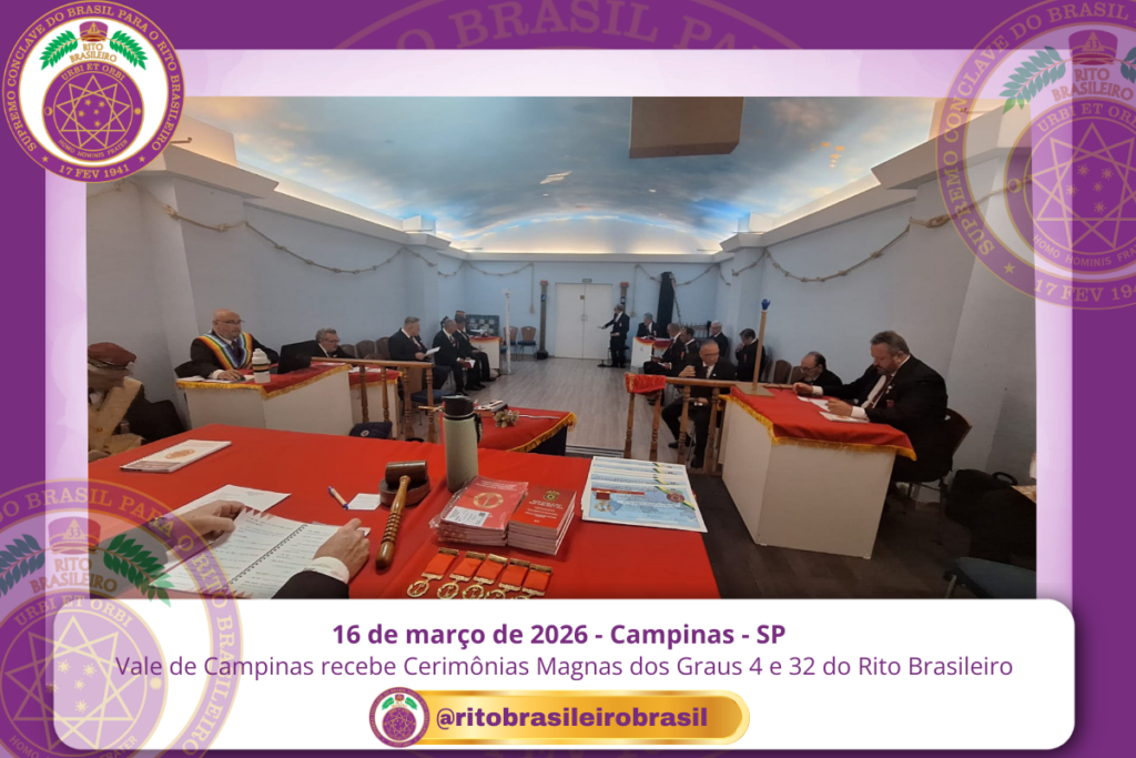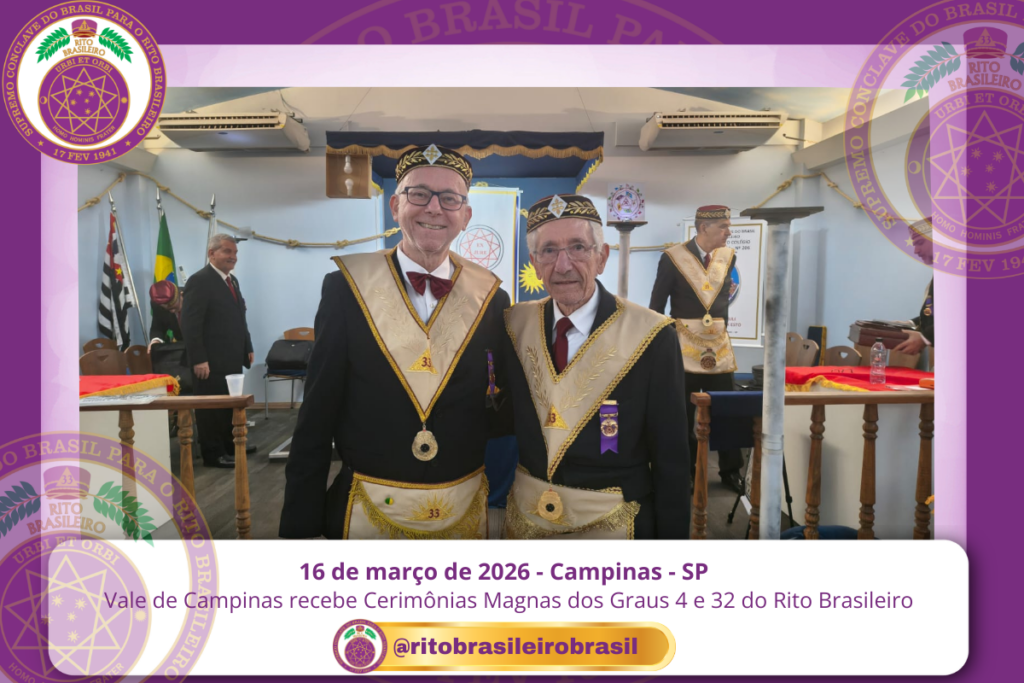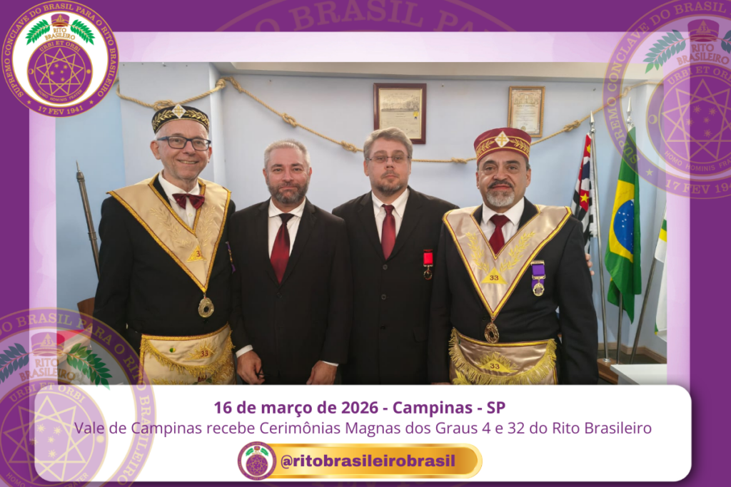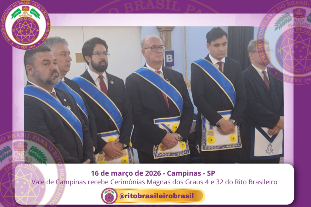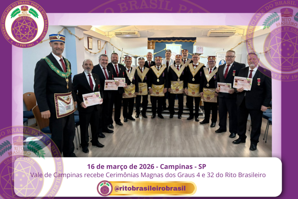 No dia dezesseis de março de dois mil e vinte e seis, o Colendo Alto Colégio Lauro Sodré I nº 206 e o Ilustre e Sublime Capítulo Edison Barsanti nº 20 reuniram-se no Vale de Campinas, no Clima de São Paulo, para a realização de Cerimônias Magnas de Colação dos Graus 32 e 4 do Rito Brasileiro. As solenidades evidenciaram o crescimento e o fortalecimento do Rito Brasileiro de Maçons Antigos, Livres e Aceitos no interior paulista, reunindo autoridades e Irmãos em um momento marcante de integração e compromisso institucional.