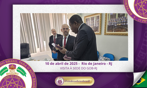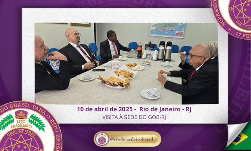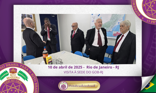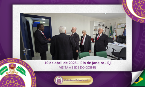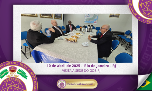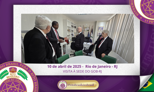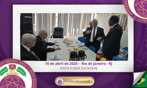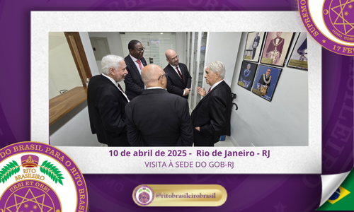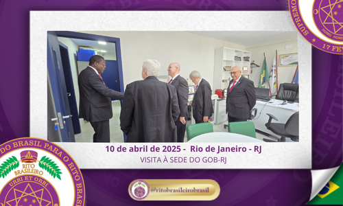 Nesta manhã do dia 10 de abril, o Soberano Irmão JULIANO COELHO BRAGA, Grande Primaz, acompanhado pelos Sapientíssimo Irmão NEI INOCENCIO DOS SANTO, Grande Primaz Emérito; Sereníssimos Irmãos CÉSAR ROBERTO DANIEL DOURADO, Grande Regente; EDUARDO GOMES DE SOUZA, Grande Chefe de Gabinete; e, JOÃO DIAS, Grande Chanceler, todos integrantes da Magna Reitoria do Rito Brasileiro, fizeram uma visita de cortesia ao Grão-Mestre Estadual do GOB – RJ, Eminente Irmão ANDRÉ LUÍS DOS SANTOS.
