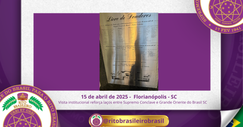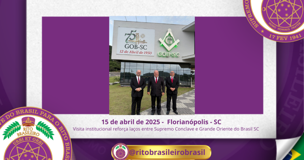 No dia quinze de abril de dois mil e vinte e cinco, o Soberano Grande Primaz Juliano Coelho Braga e o Sereníssimo Grande Regente Cesar Dourado estiveram em visita institucional à belíssima sede do Grande Oriente do Brasil Santa Catarina, a Latitude de Florianóplis.